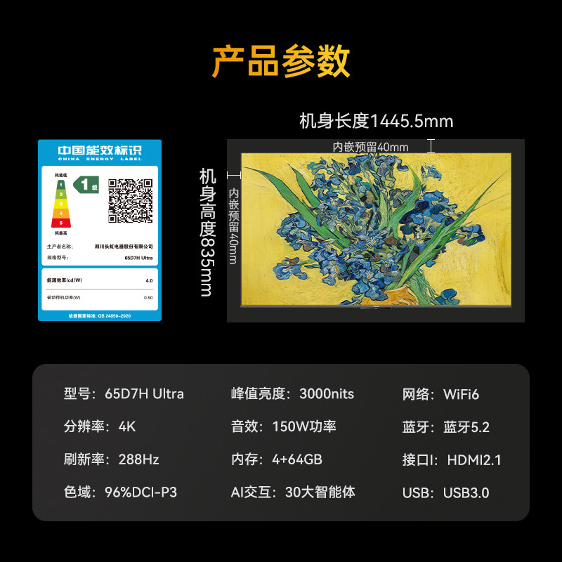 长虹D7H Ultra 65英寸光翼壁画双低反液晶超薄壁纸电视机新款补贴