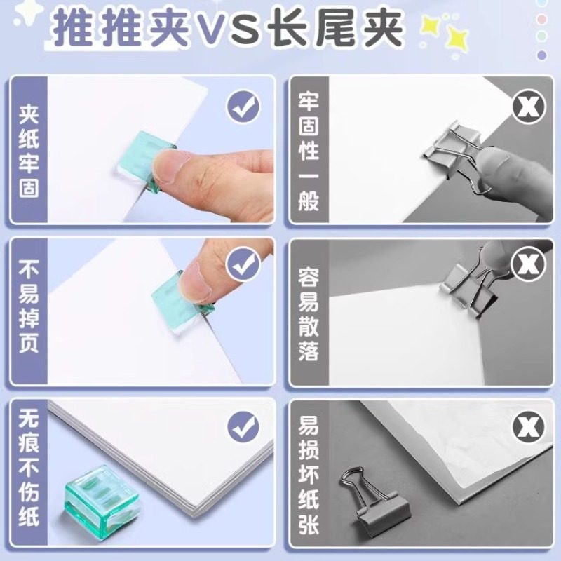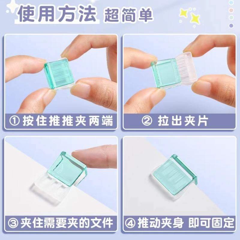 透明推推夹推夹器试卷收纳无痕装订办公文件文具固定小夹子燕尾夹糖果色学生试卷固定器夹
