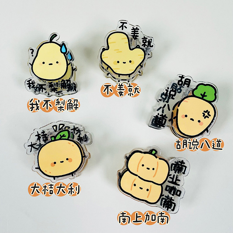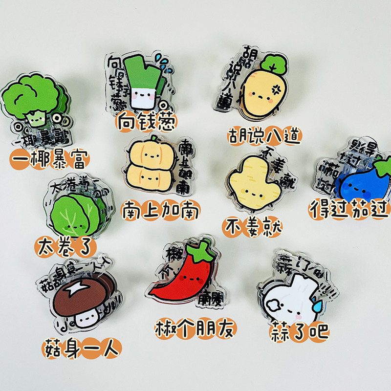 文具颜文字蔬菜水果亚克力塑料PP手账夹文件票据小夹子多功能固定器食品夹学生用高颜值可爱彩色小奖品礼品