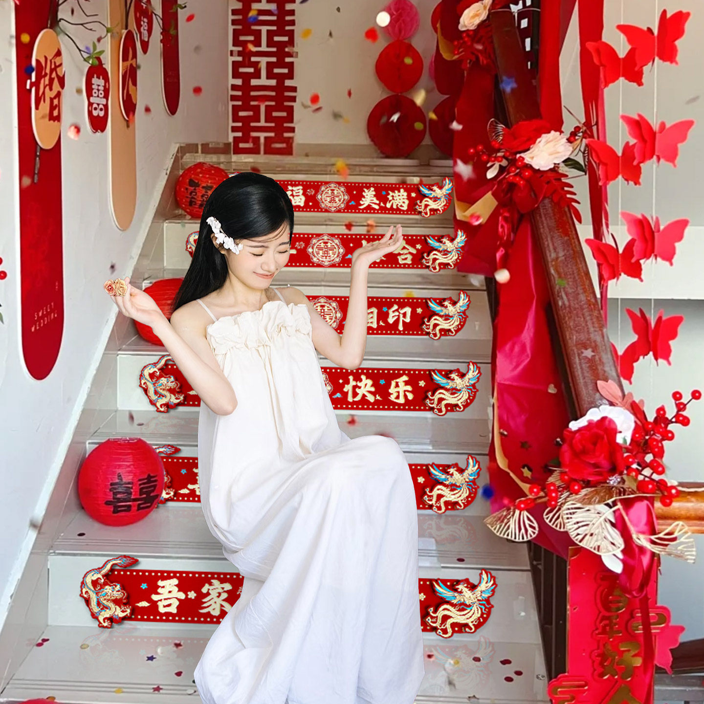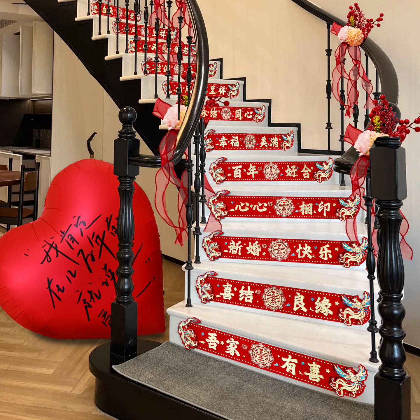 结婚楼梯台阶装饰贴纸婚房布置女方婚礼喜字婚庆喜事用品大全新婚