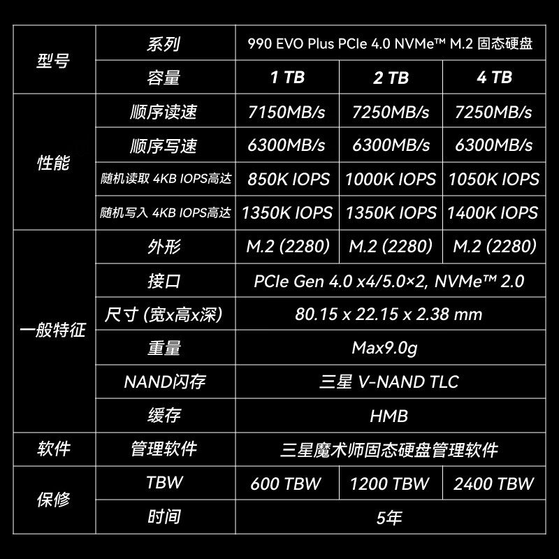 三星(SAMSUNG)SSD固态硬盘 990 EVO Plus M.2接口 笔记本台式机