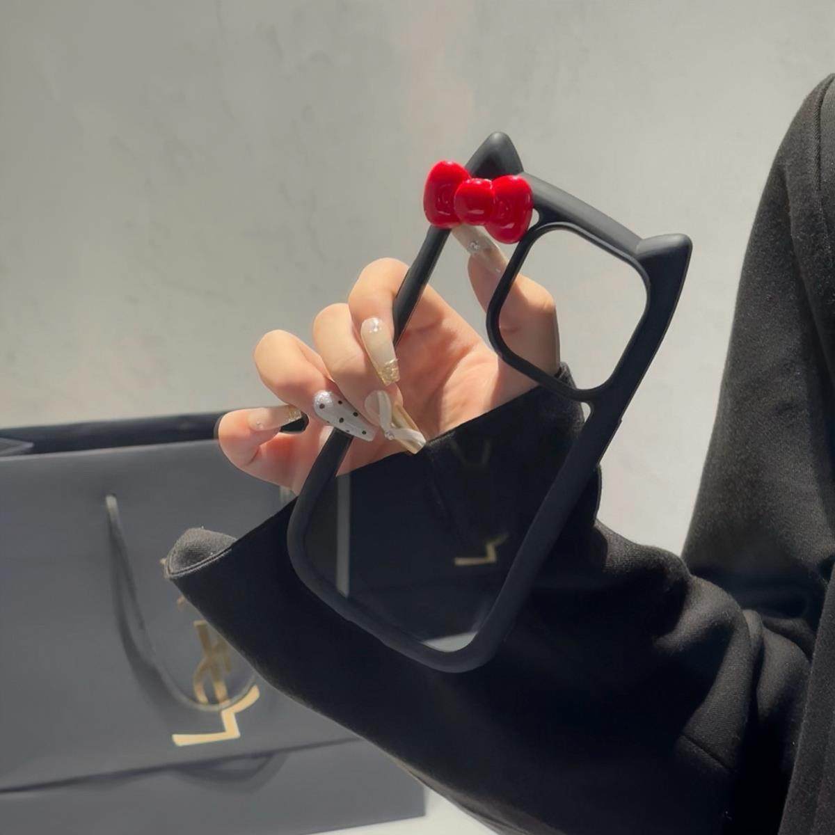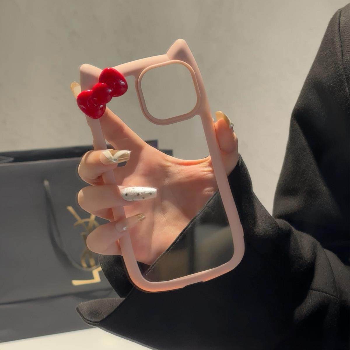 ins简约纯色边框透明猫耳朵适用11苹果15ProMax手机壳iPhone13全包16新款12软14Promax防摔保护套14蝴蝶结女