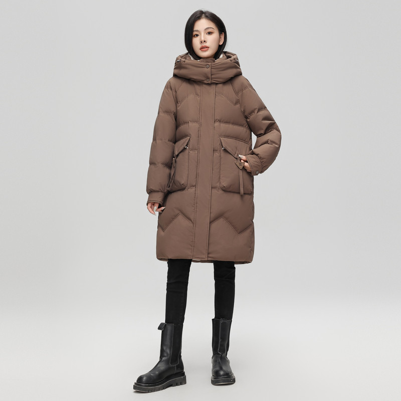雪中飞2025冬新款女士中长款羽绒服三防可脱卸帽廓形韩版气质暖