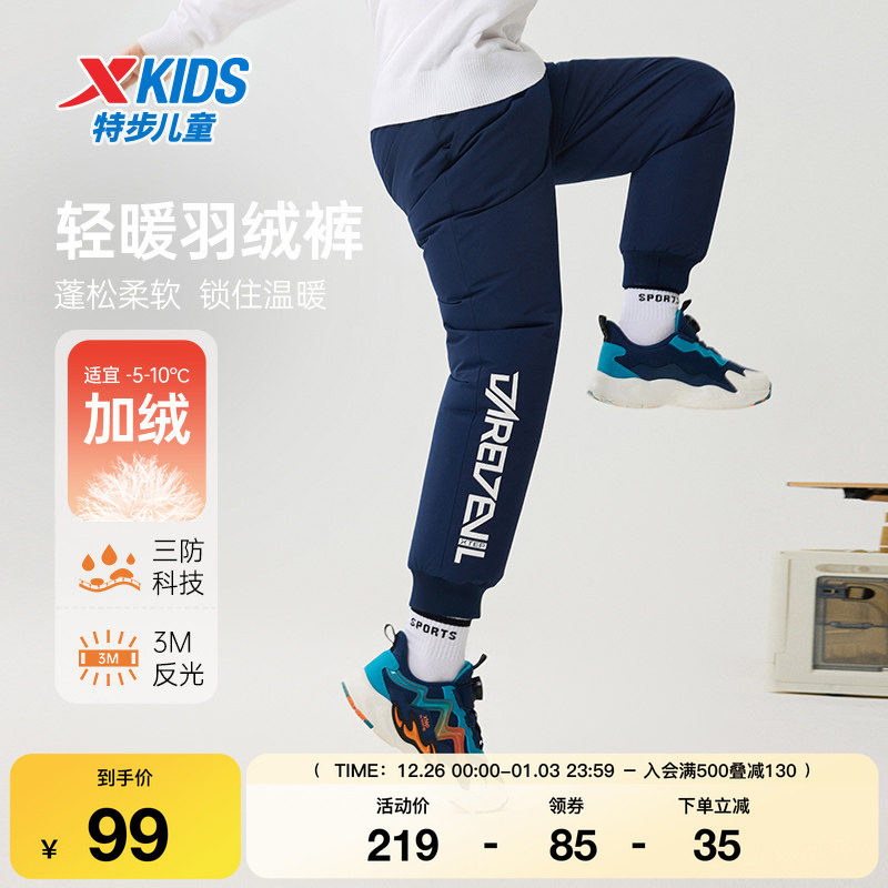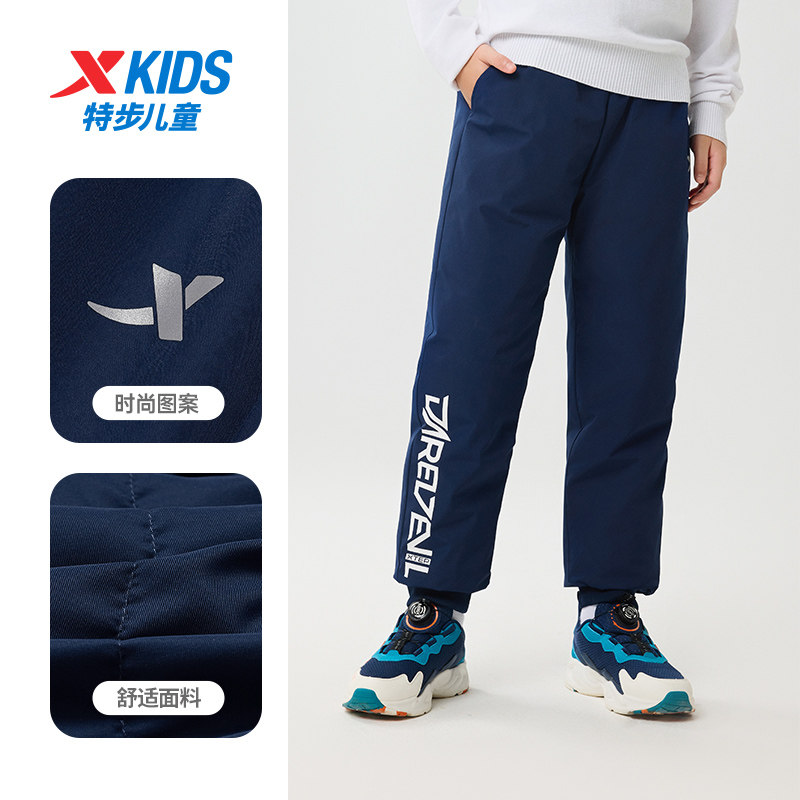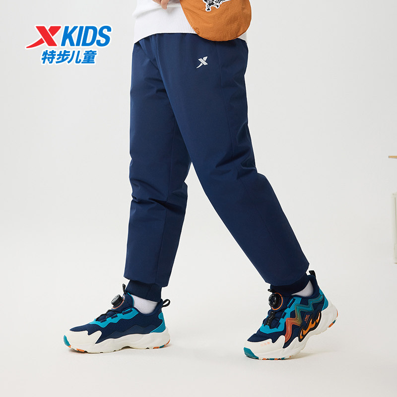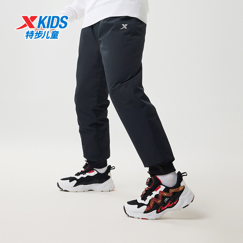 特步童装春秋新款中大童舒适柔软运动羽绒裤男童保暖长裤儿童裤子