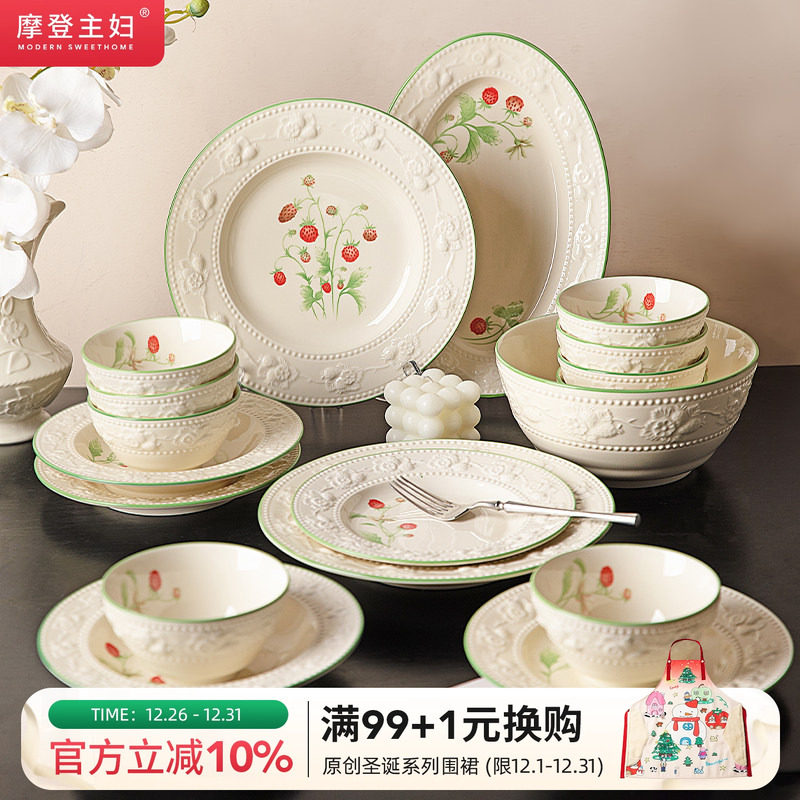 摩登主妇餐具法式浮雕家用高级碗具乔迁结婚新婚礼物碟筷碗盘套装