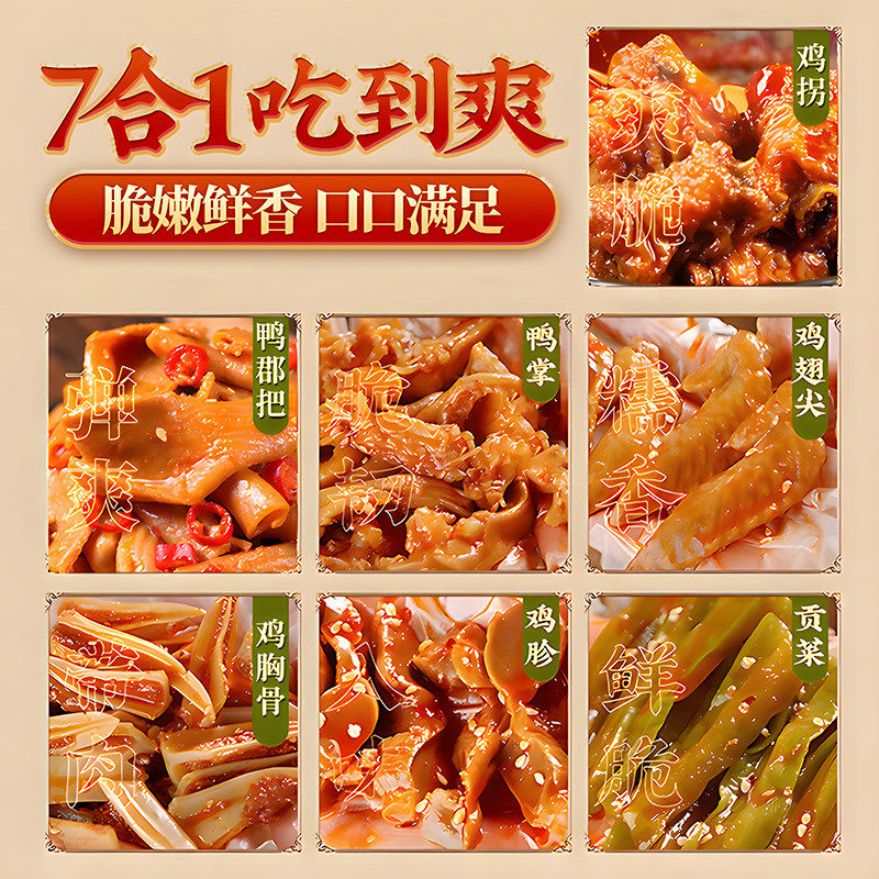 四川椒麻大杂烩双脆卤无骨鸡爪贡菜减低骨脂零食男生夜宵充饥
