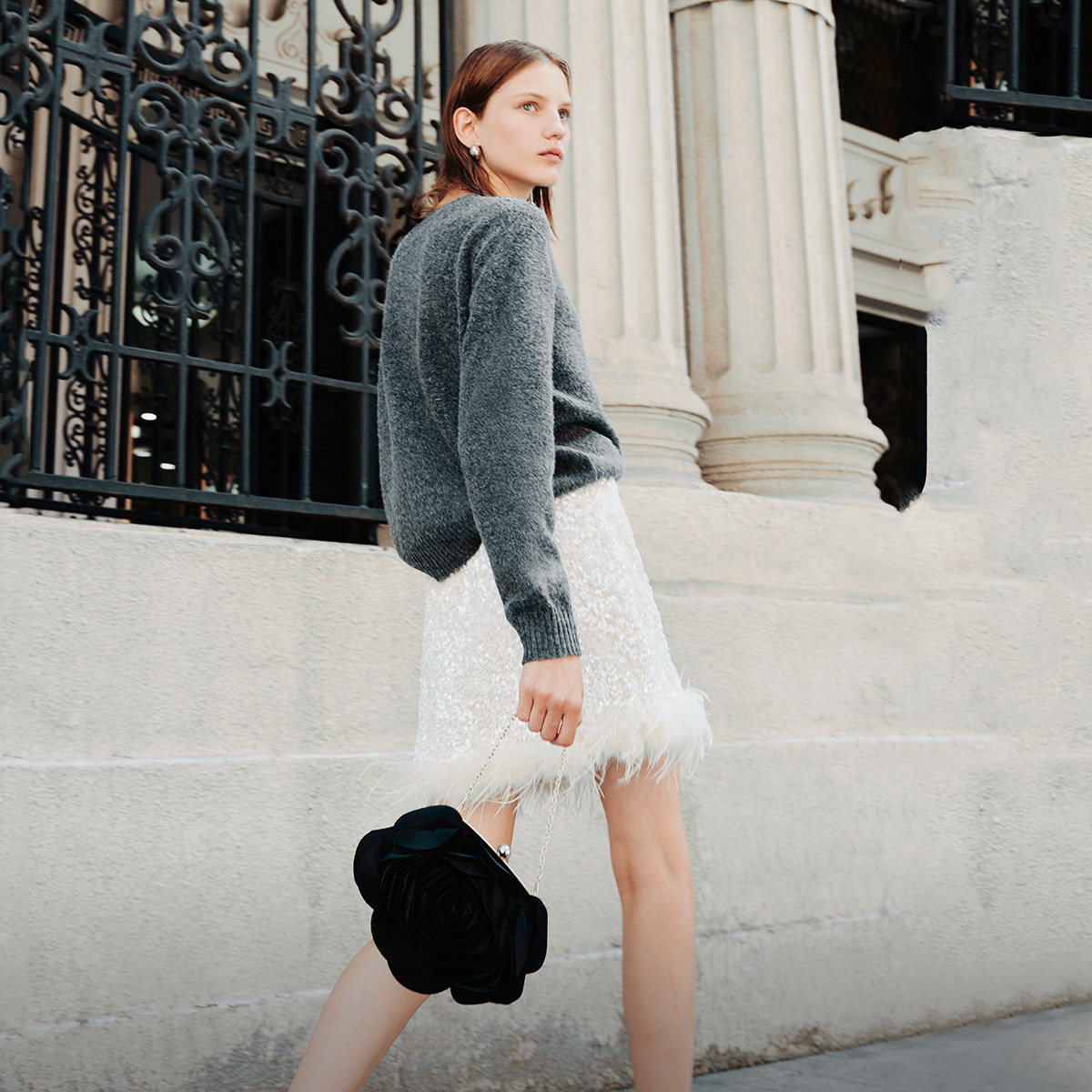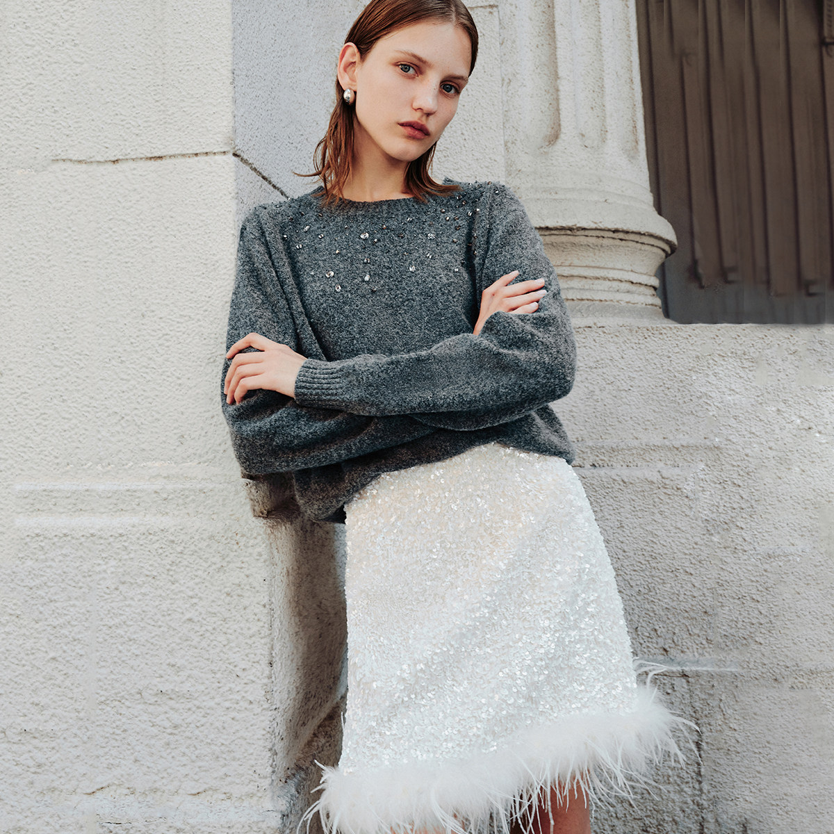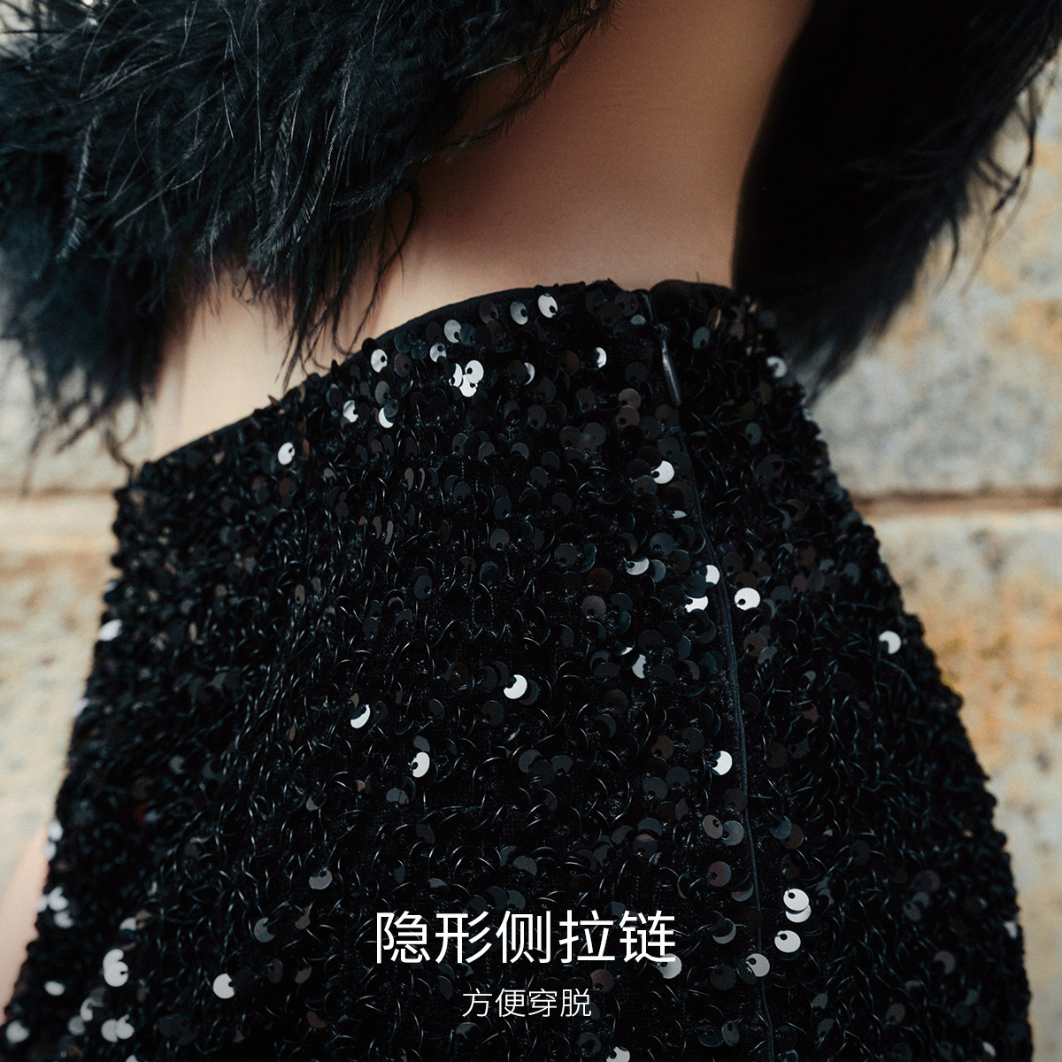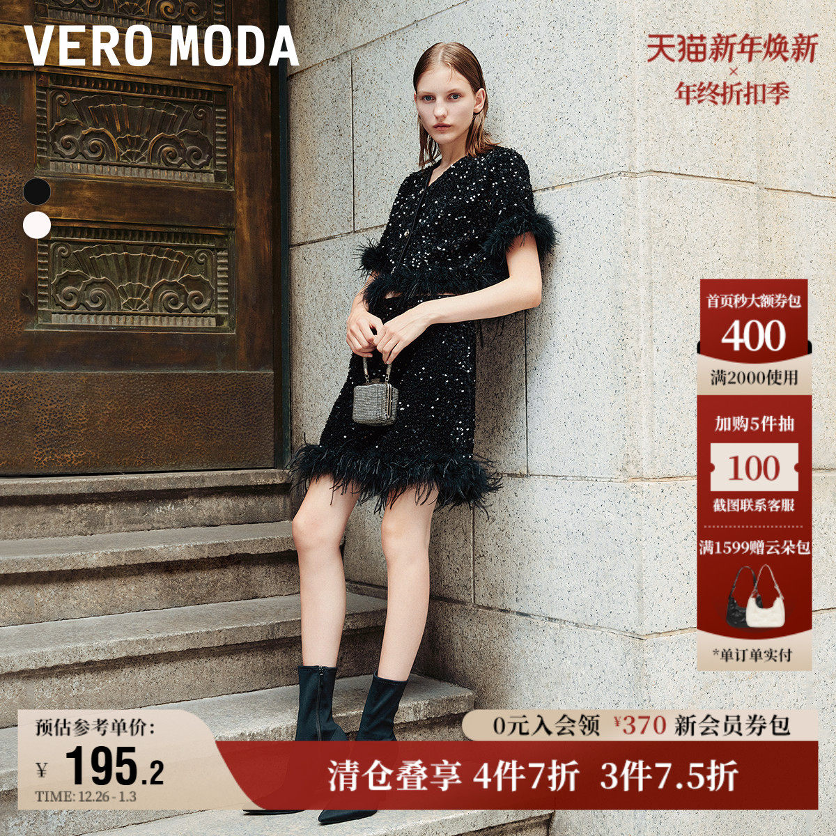 Vero Moda奥莱半身裙秋冬新款亮片羽毛装饰时髦优雅华丽短裙流行