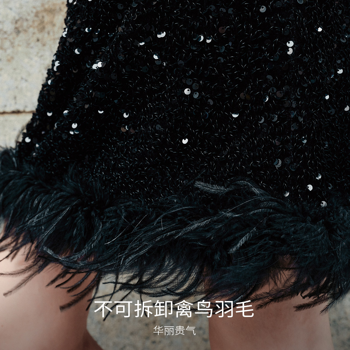 不可拆卸禽鸟羽毛,华丽贵气;亮片装饰