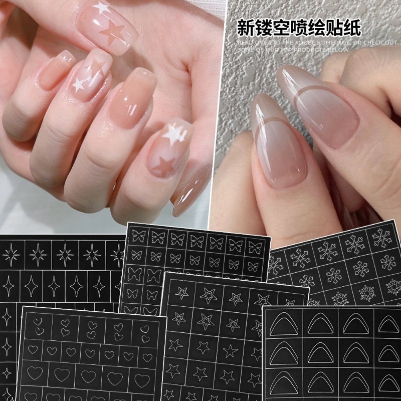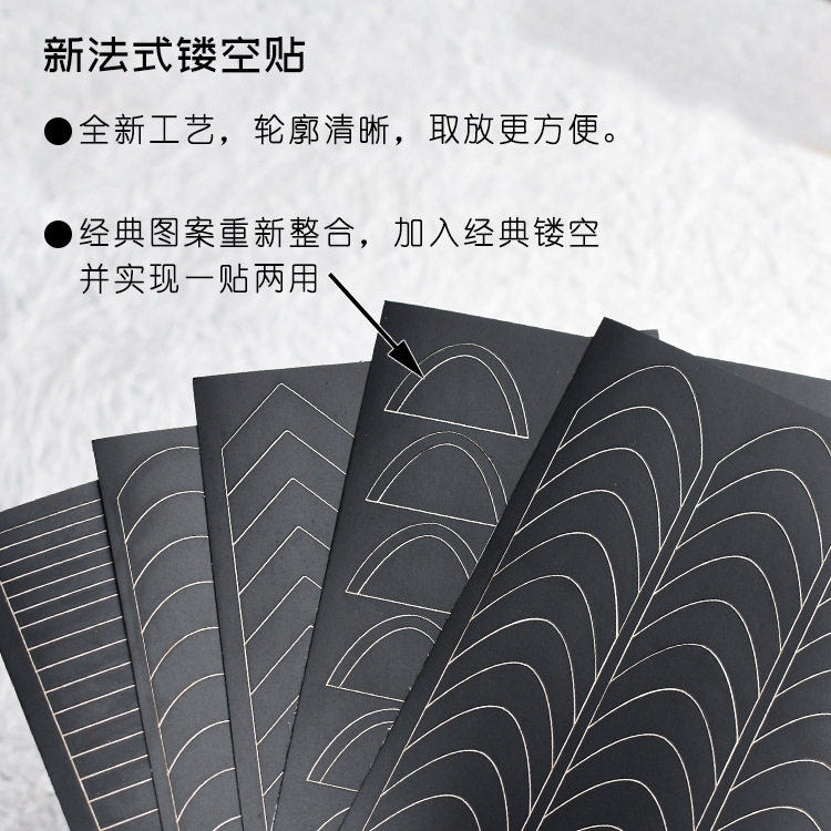 美甲贴纸深U法式贴穿戴甲美甲店模板贴镂空蝴蝶五角星十字架雪花