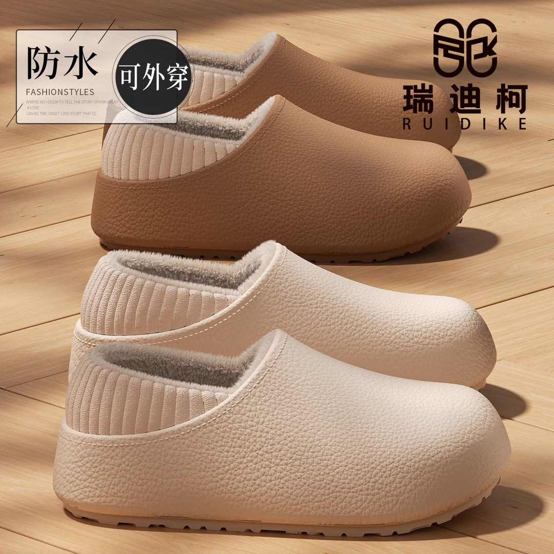 防水棉拖鞋女秋冬季2025新款保暖家用厚底防滑居家情侣毛毛绒男士