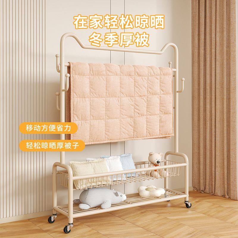 晾衣架落地家用卧室挂衣服简易室内凉衣杆折叠阳台伸缩晒衣帽架子