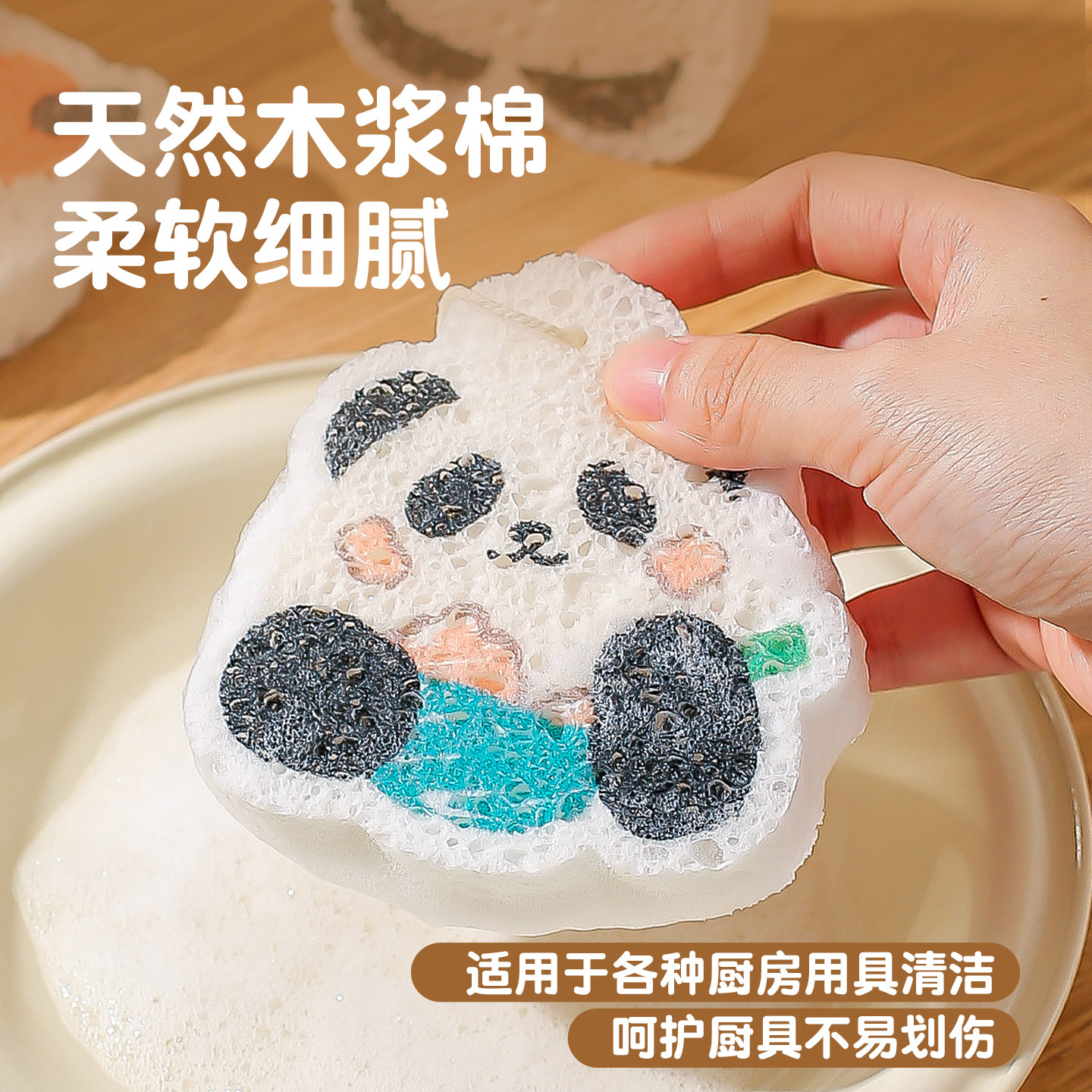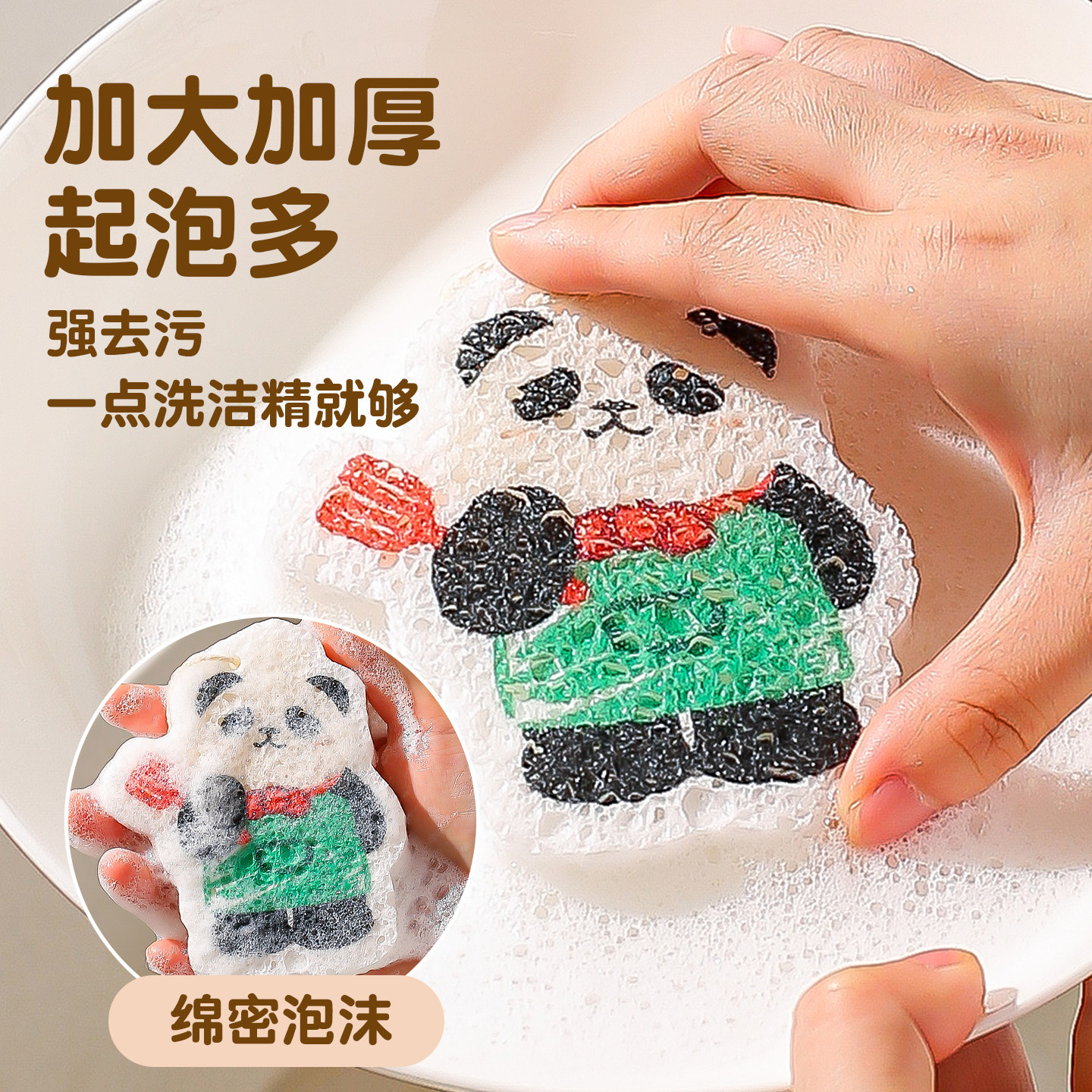 川岛屋熊猫洗碗海绵擦木浆棉洗碗棉厨房家用百洁布魔力擦刷碗神器