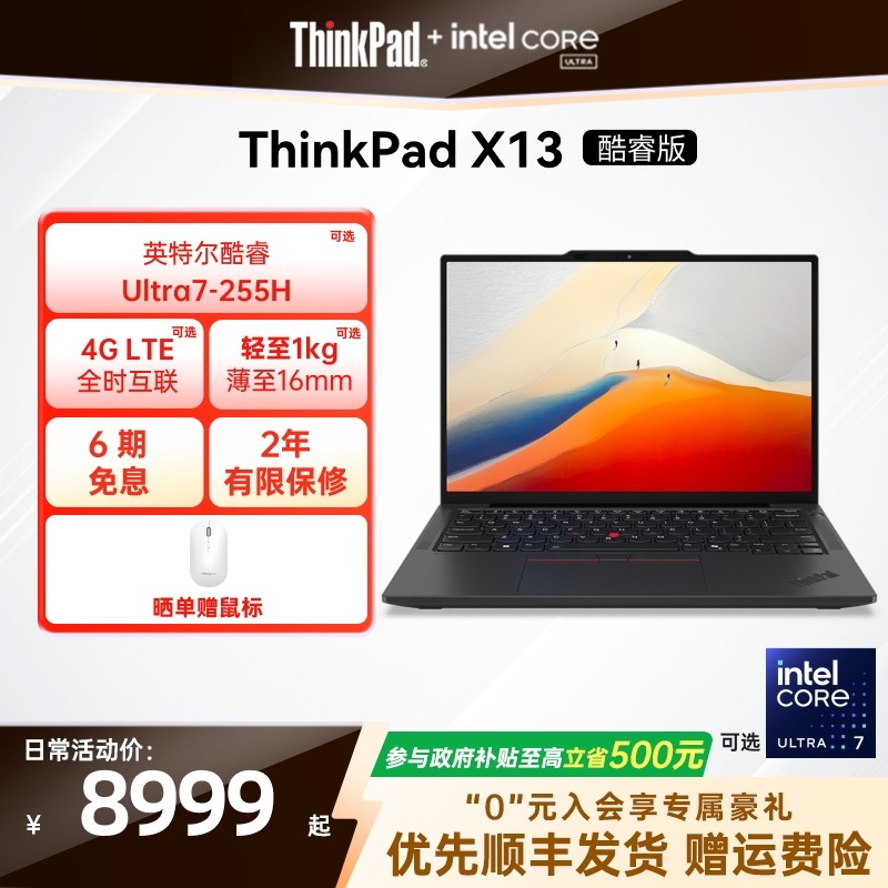 【政府补贴】联想ThinkPad X13英特尔Evo酷睿Ultra5/7 32G1T轻薄商务娱乐办公笔记本电脑官方旗舰店