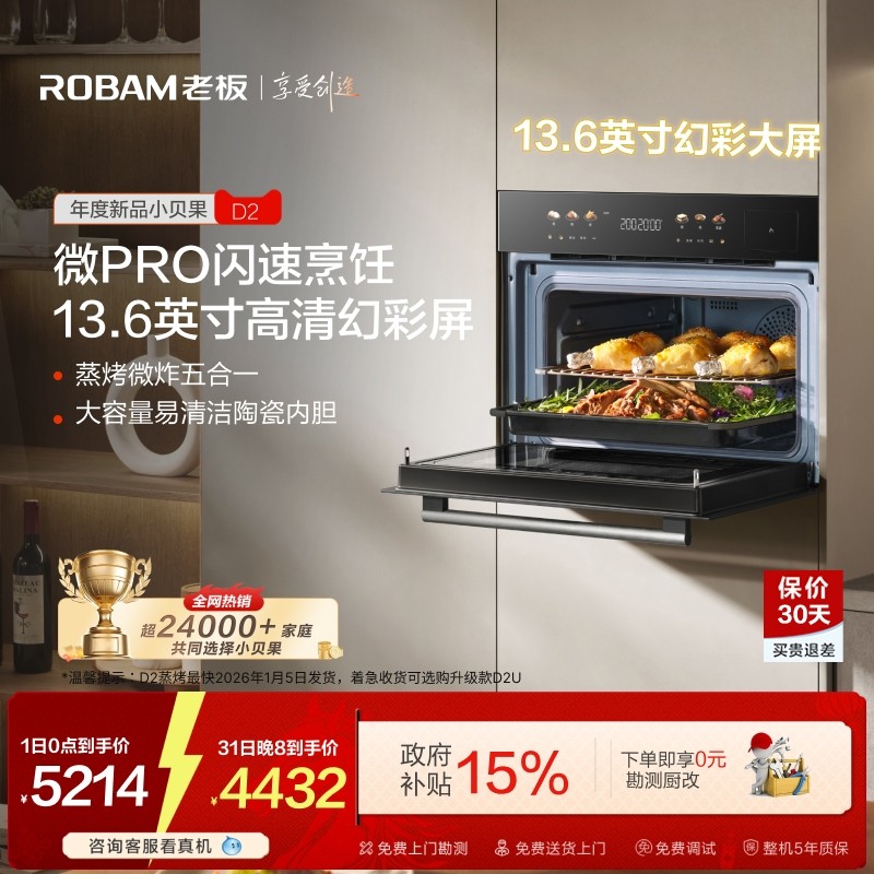 老板小贝果D2微蒸烤炸炖一体机五合一大容量嵌入式蒸烤箱家用