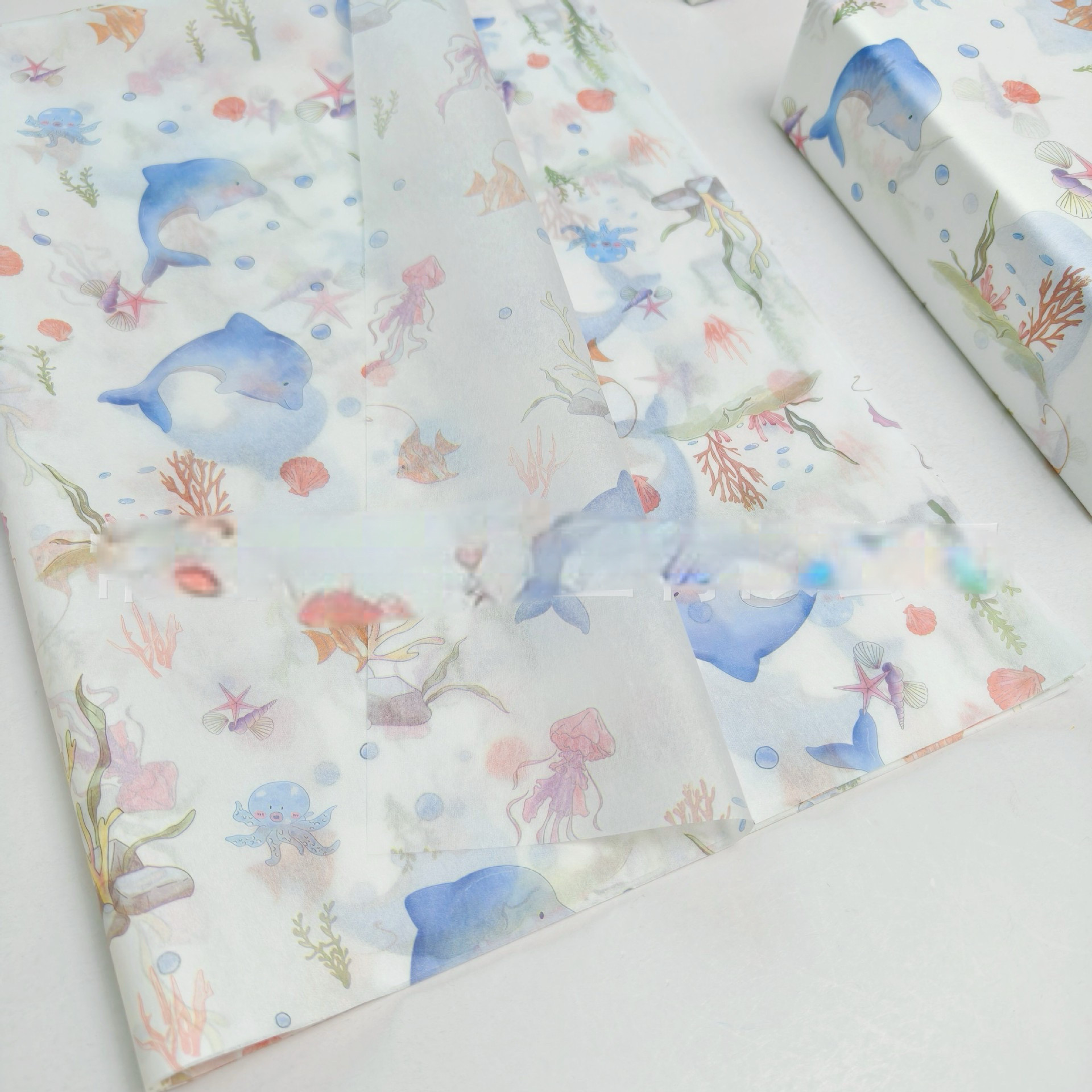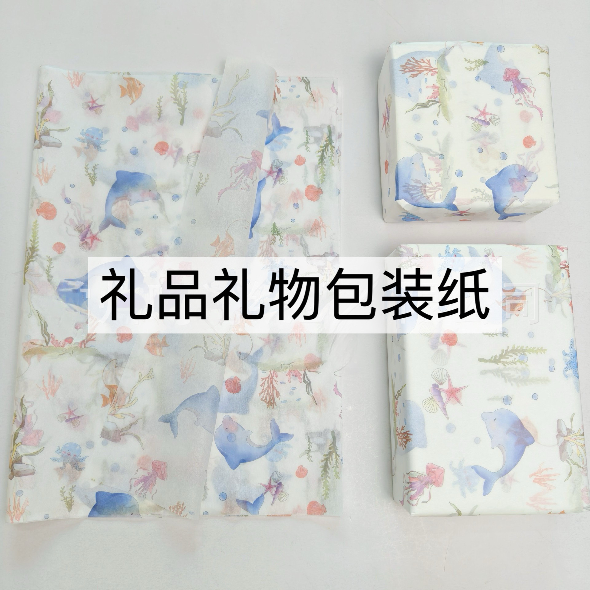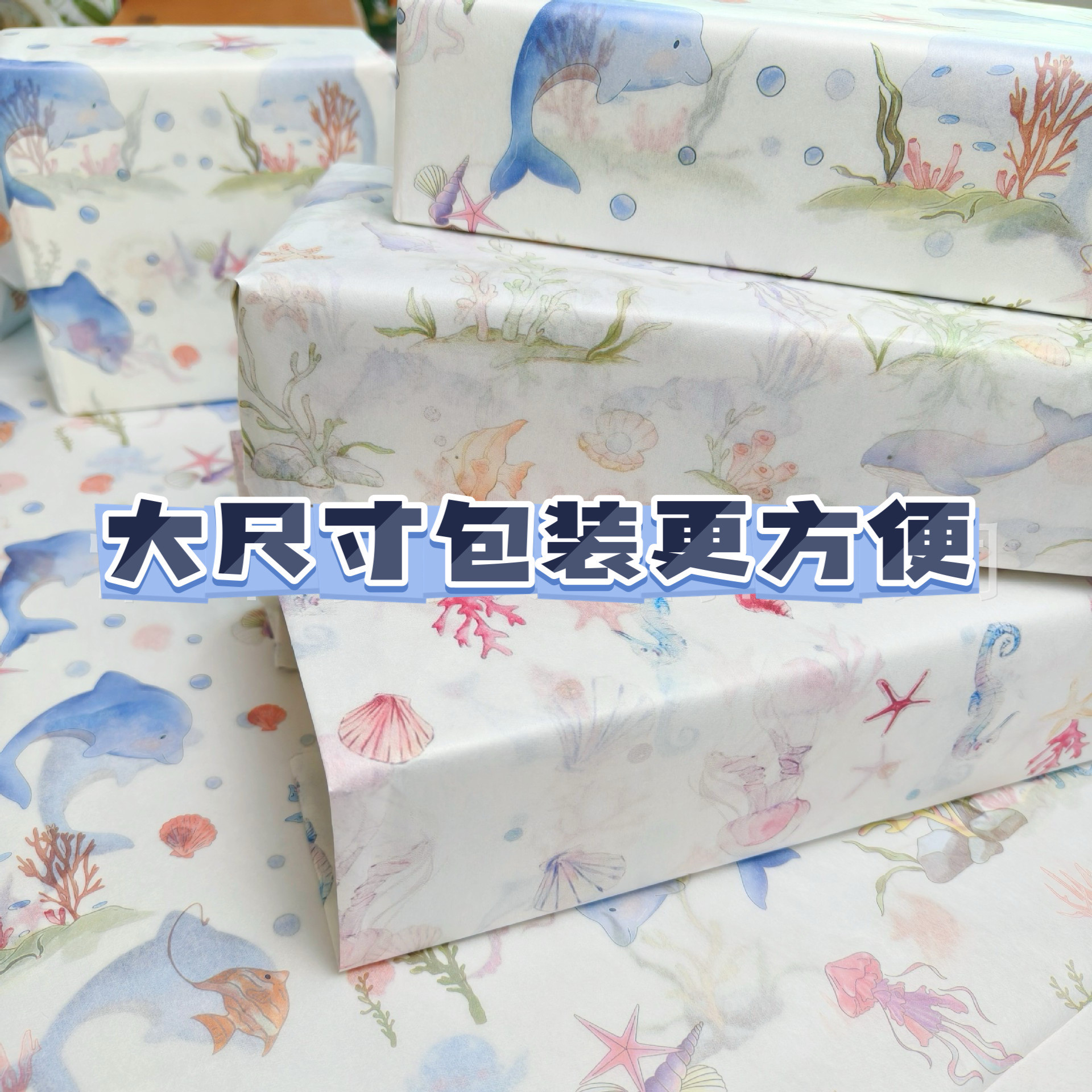 大尺寸包装纸雪梨纸梦幻海洋生物系列鲸鱼水母鲜花礼品礼物包装