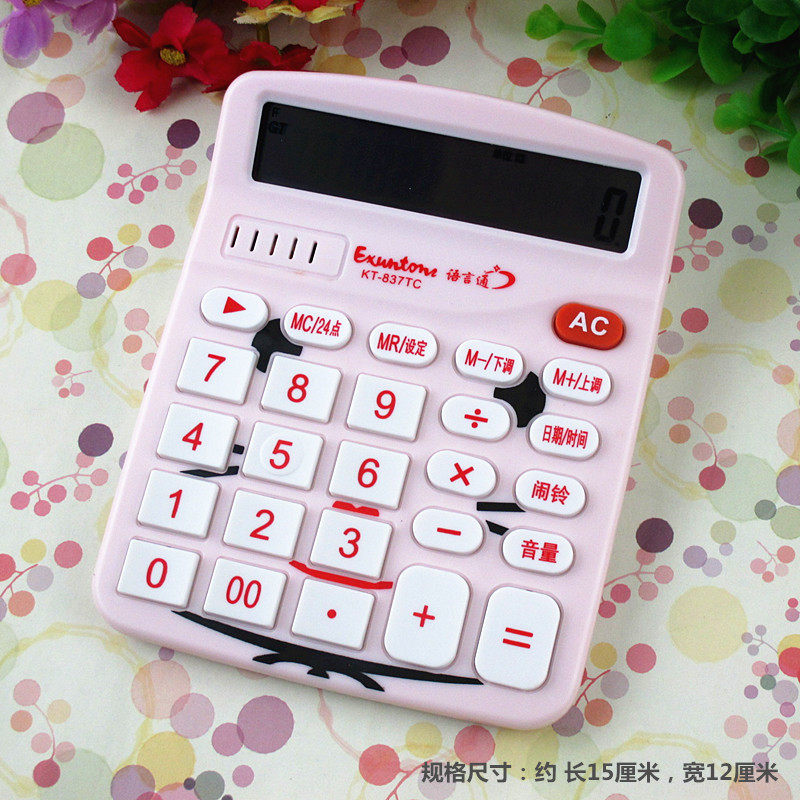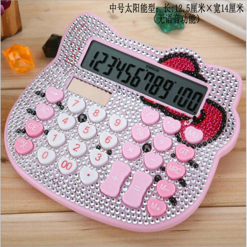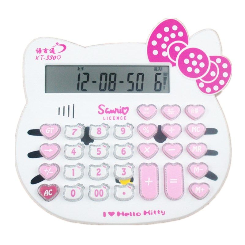 可爱卡通KT猫语音计算器彩色大号水晶太阳能学生发音计算机糖果色