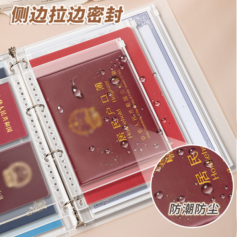 证件收纳包证书活页夹收纳册证件保护套家庭资料袋活页夹透明宝宝出生证疫苗本户口本文件袋a4整理神器拉链袋