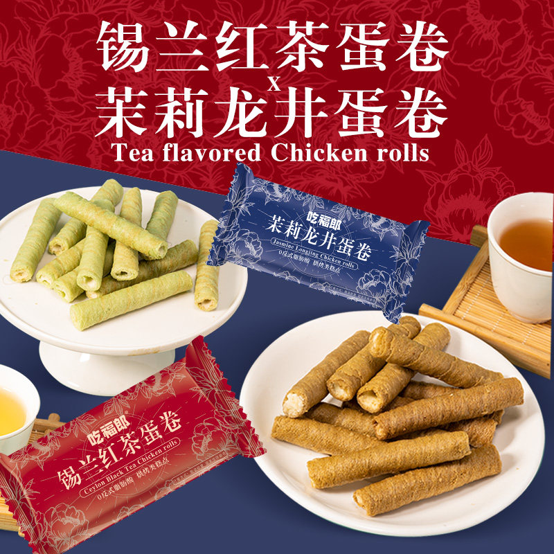 茉莉龙井蛋卷锡兰红茶蛋酥卷注夹心茶点零食小吃休闲�饼干福郎