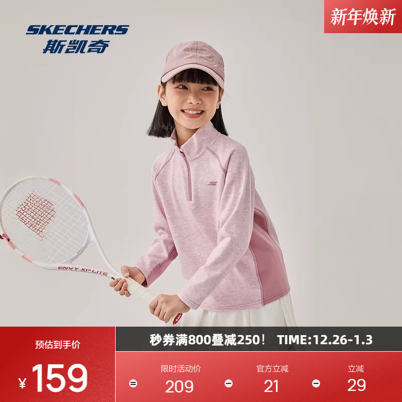 斯凯奇童装亲子装卫衣绒衫2025冬季男女通用针织半开胸长袖恤衫