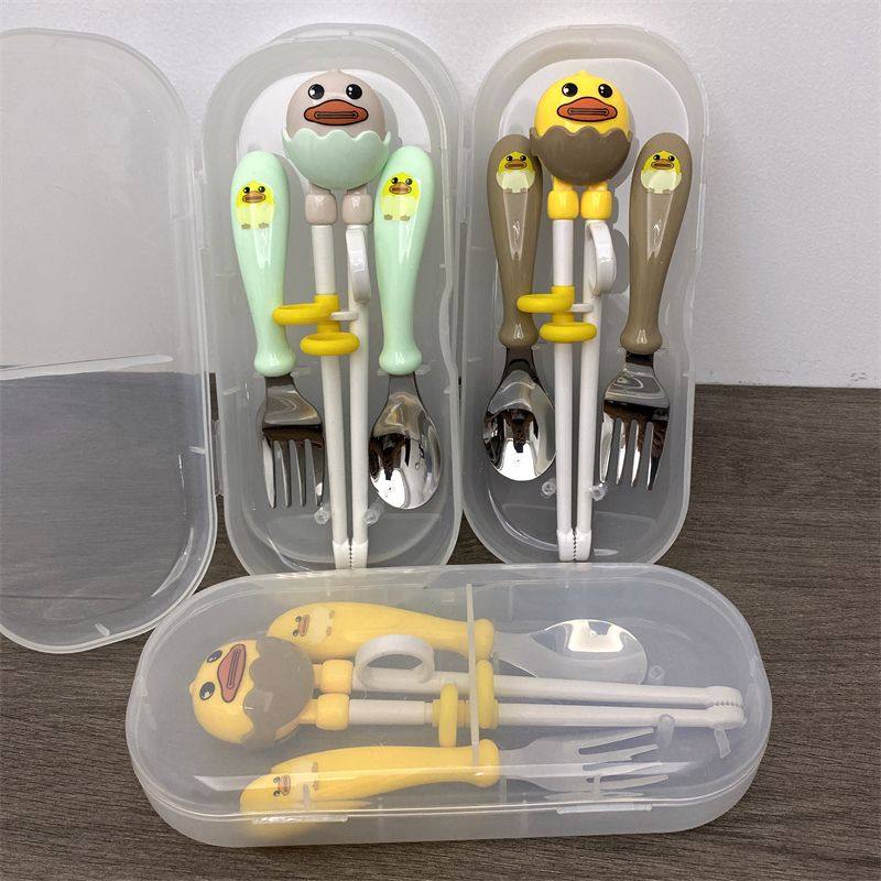 可爱儿童叉勺训练筷套装萌趣幼儿园宝宝辅食家用喂养创意便携餐具