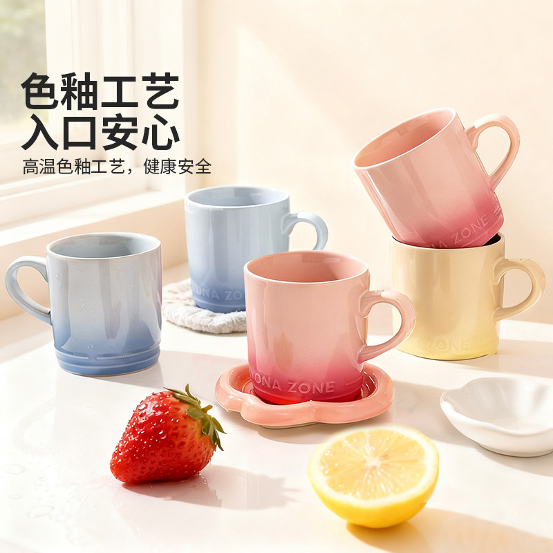 渐变马克杯高颜值杯子家用女生喝水杯办公室陶瓷情侣早餐杯咖啡杯
