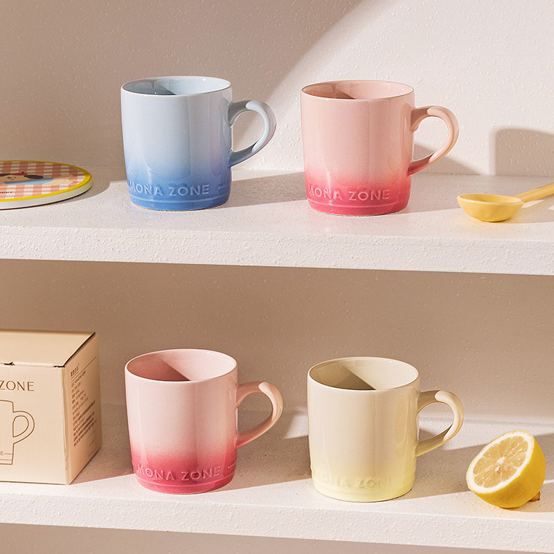 渐变马克杯高颜值家用女生喝水杯办公室陶瓷情侣水杯子早餐咖啡杯