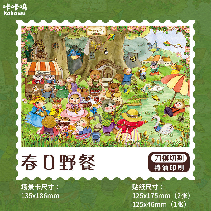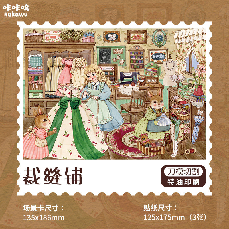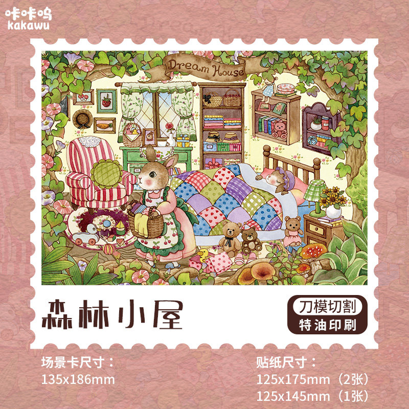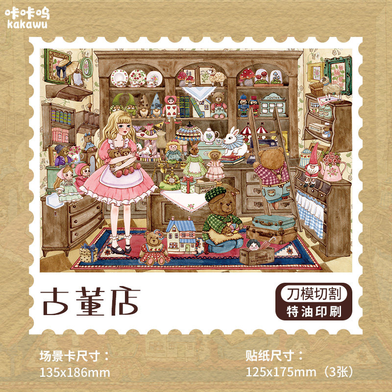 咔咔呜20.0手绘系列造景贴纸森林小屋古董店微缩场景3D立体小屋贴画手帐手账手工diy儿童玩具女孩打发时间