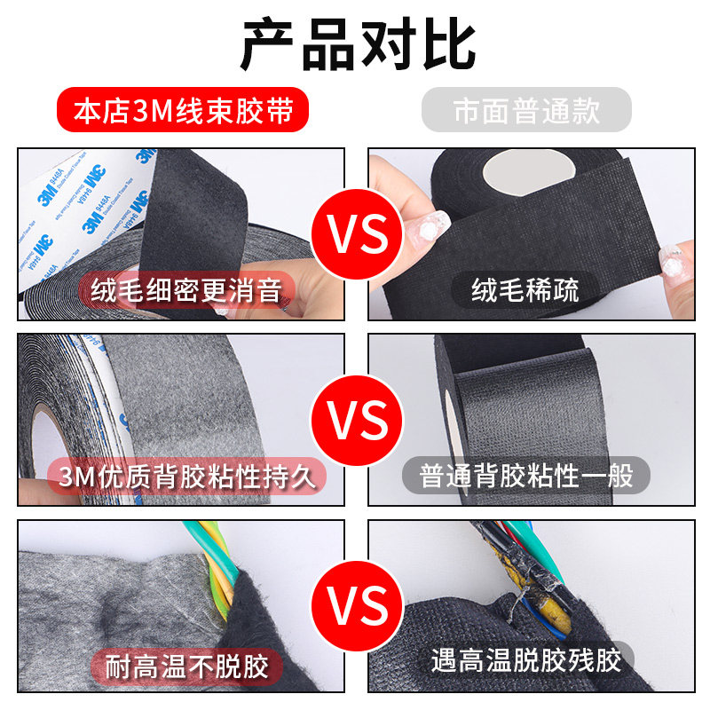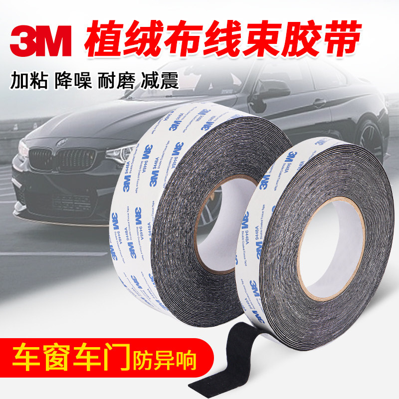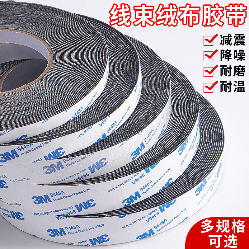 3m绒布胶带植绒胶布胶带汽车内饰贴异响静音隔音减震布密封防尘电工胶布绝缘胶布黑色耐高温胶带汽车线束胶带