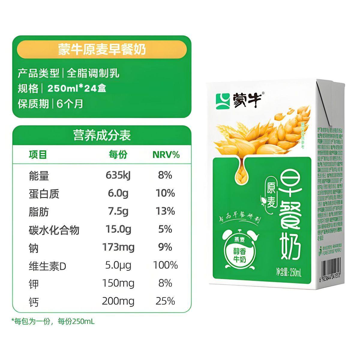【11月】蒙牛早餐奶麦香味250mL*24盒整箱营养健康送礼燕麦原麦