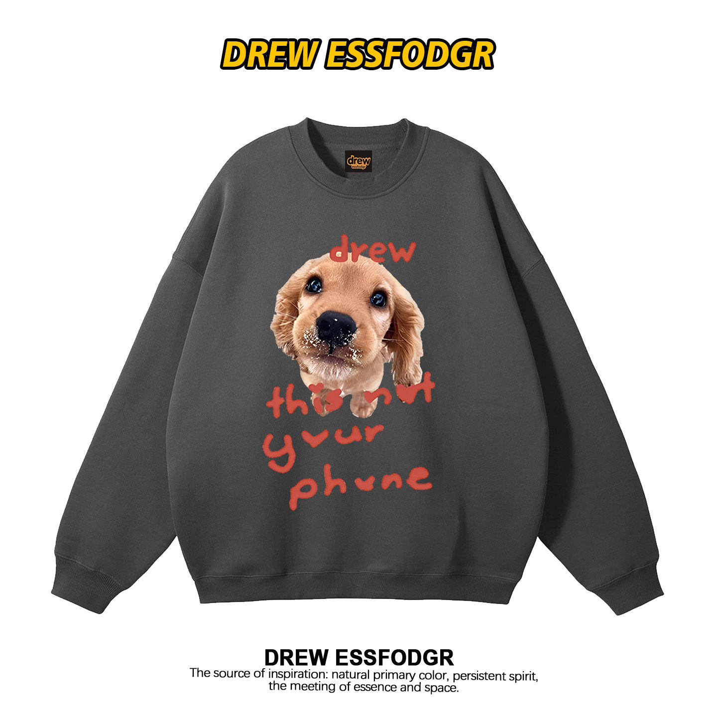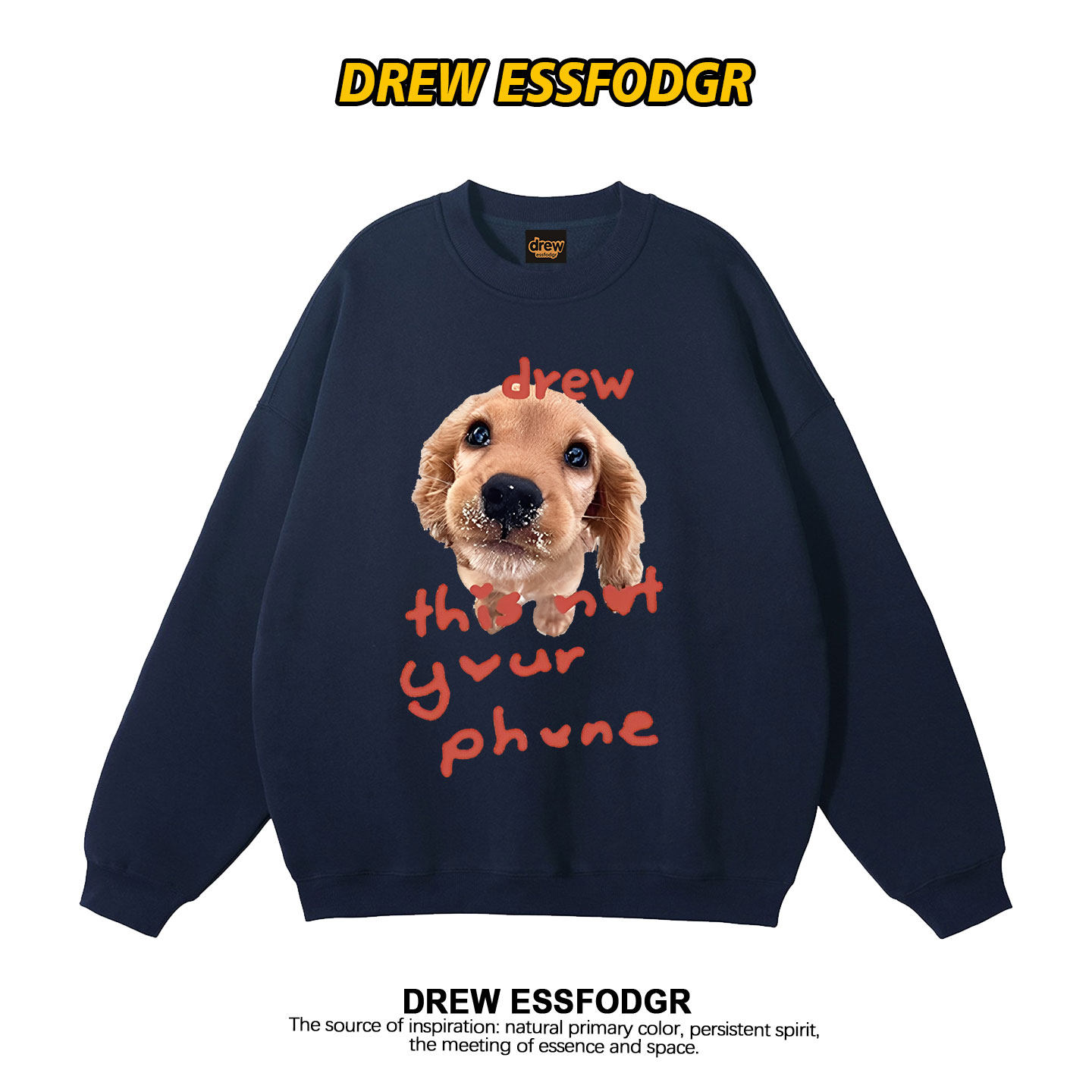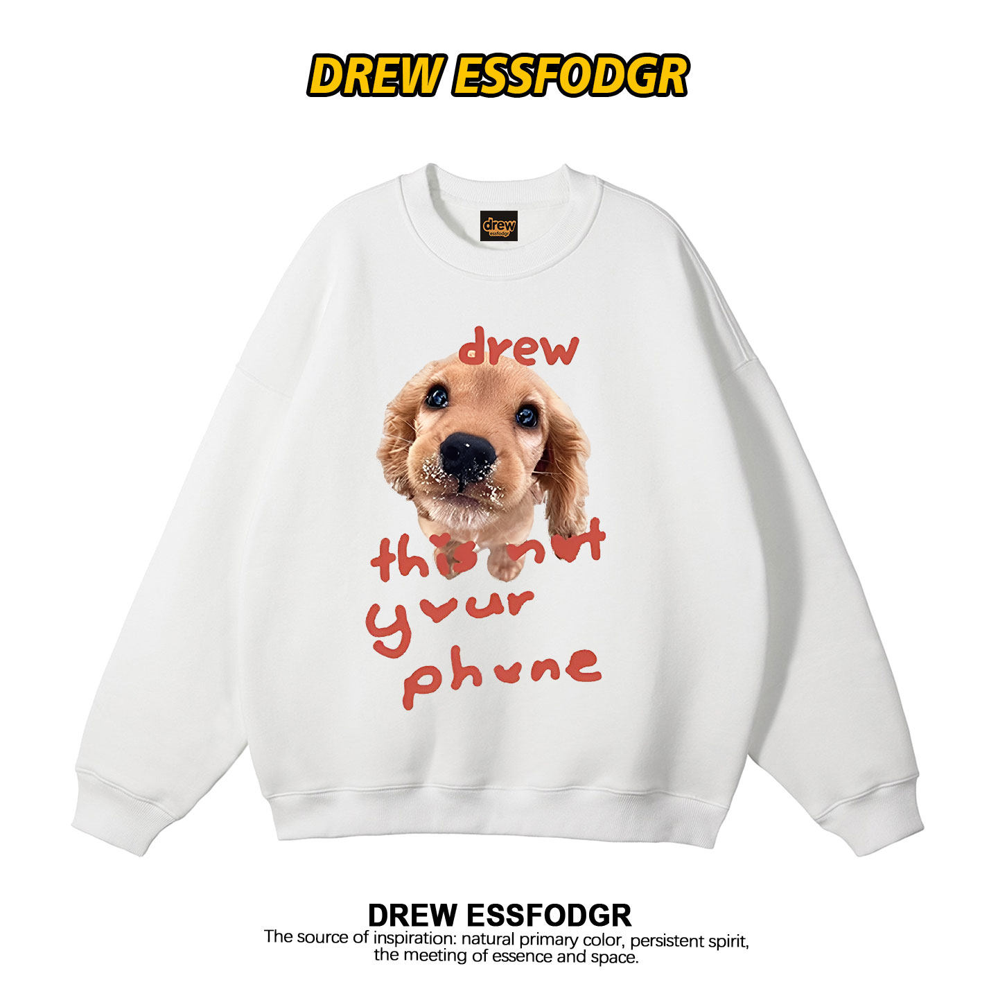 drew美式复古潮牌金毛狗狗印花圆领卫衣男女情侣宽松秋冬加绒上衣