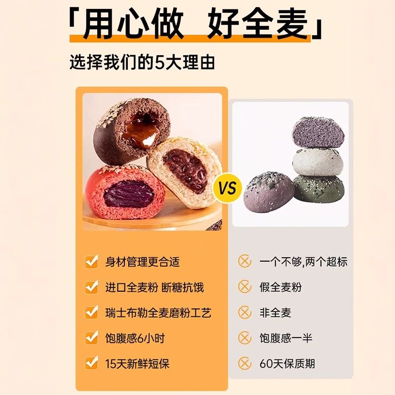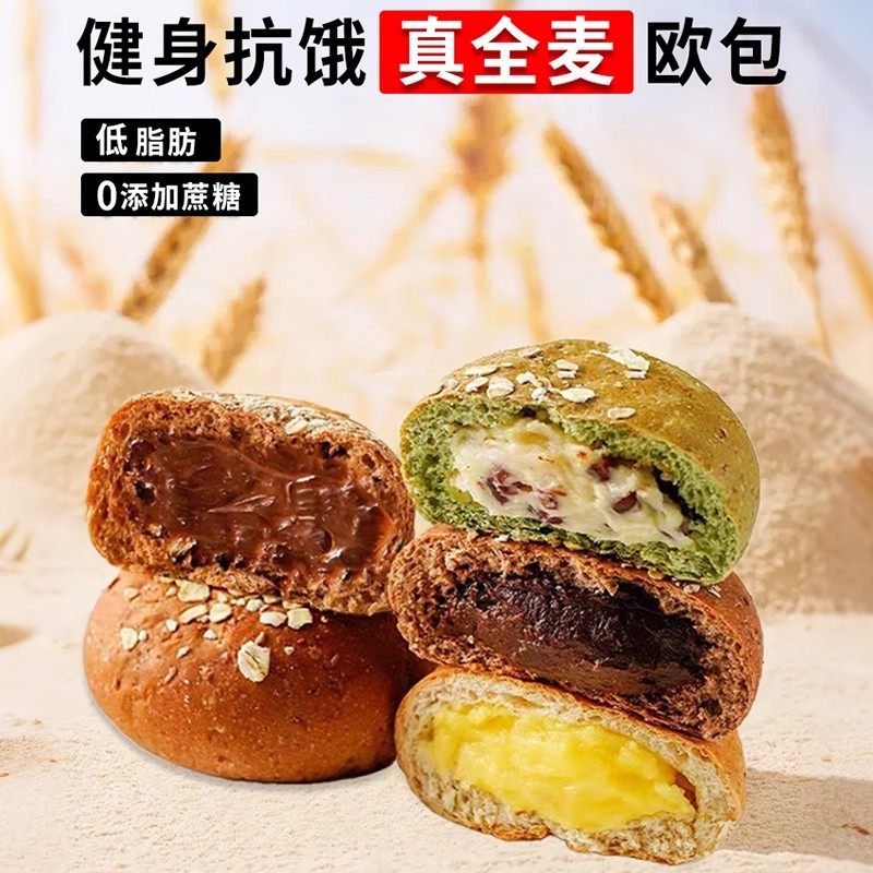 全麦欧包减低脂肪0早餐面包卡无糖精无油夹心整箱代餐饱腹零食品