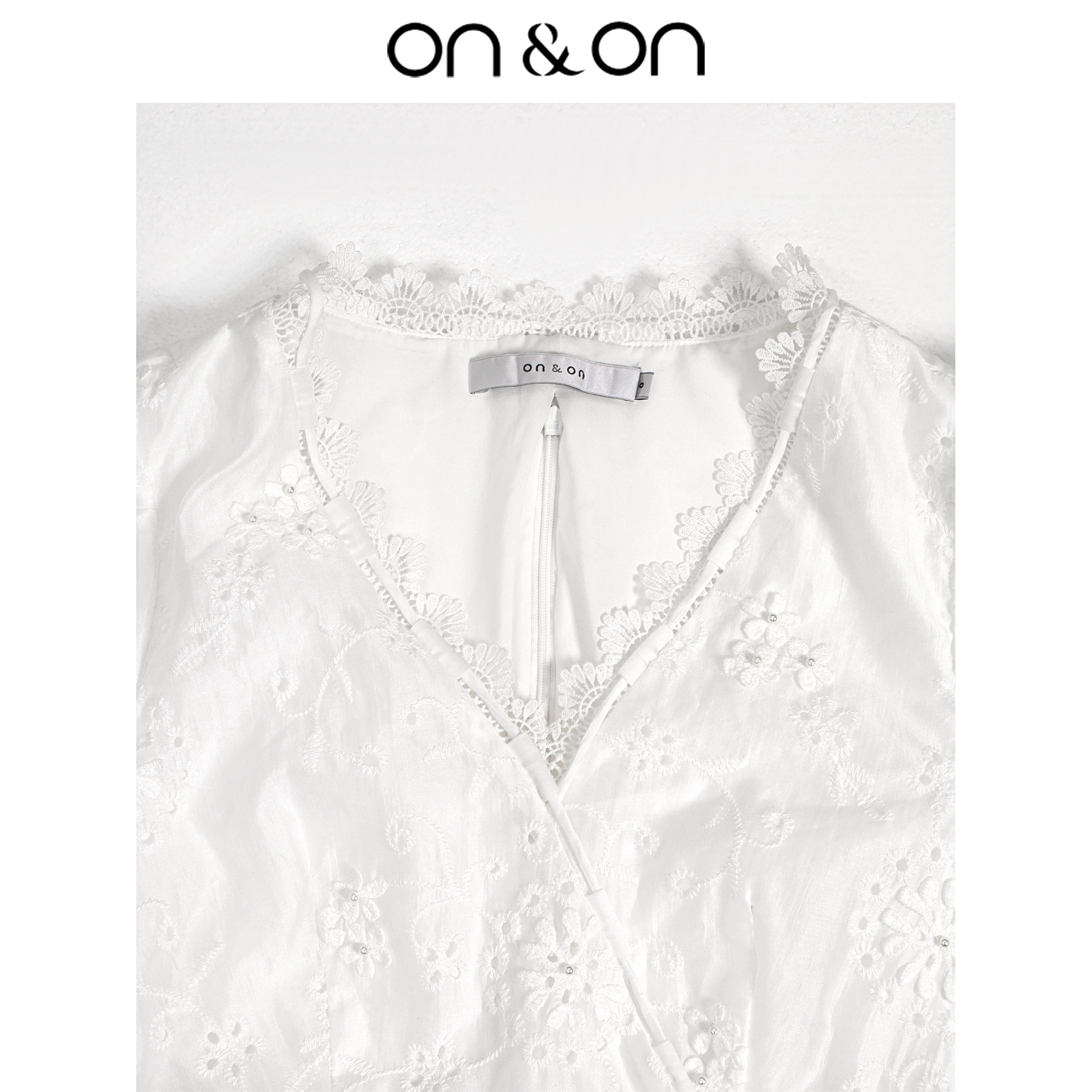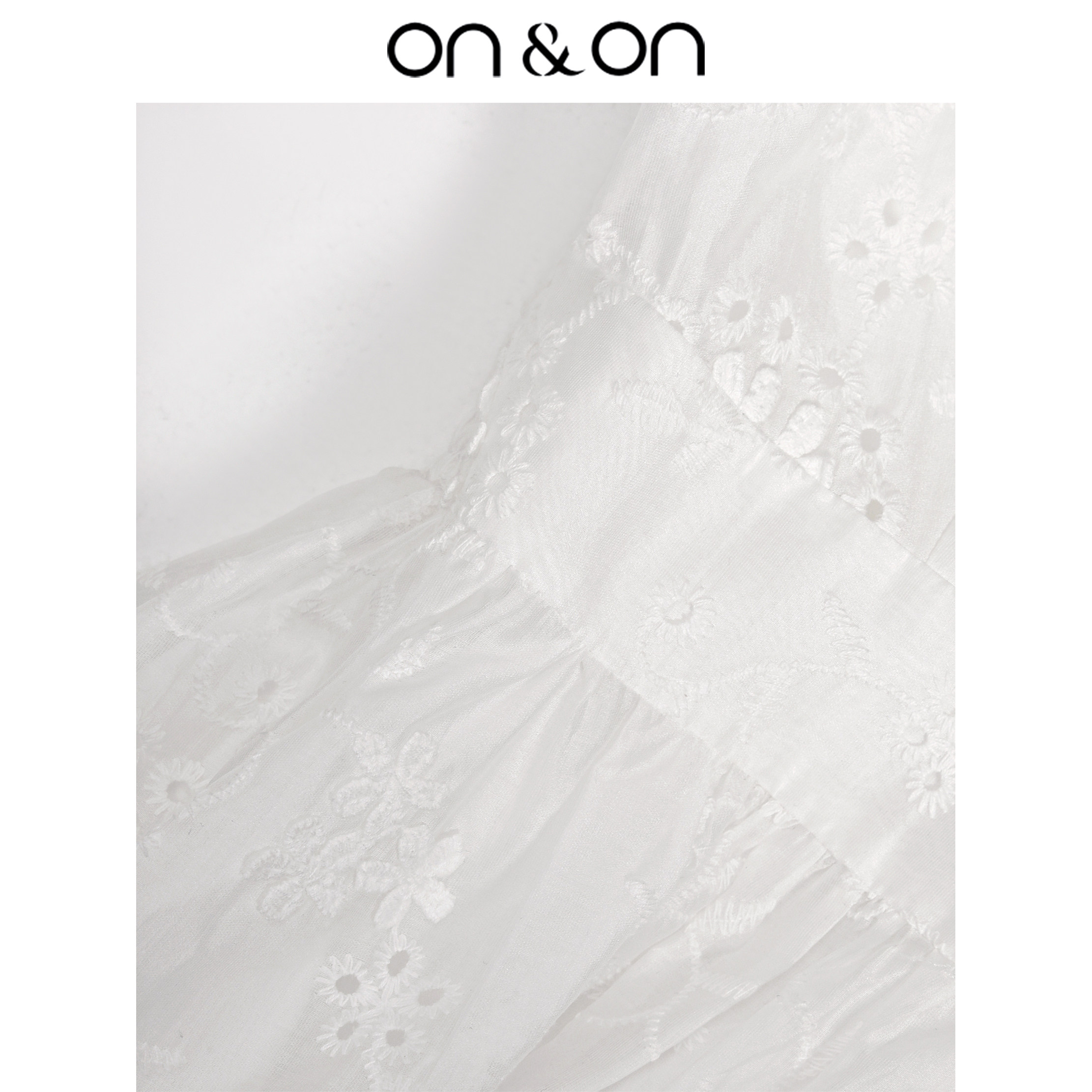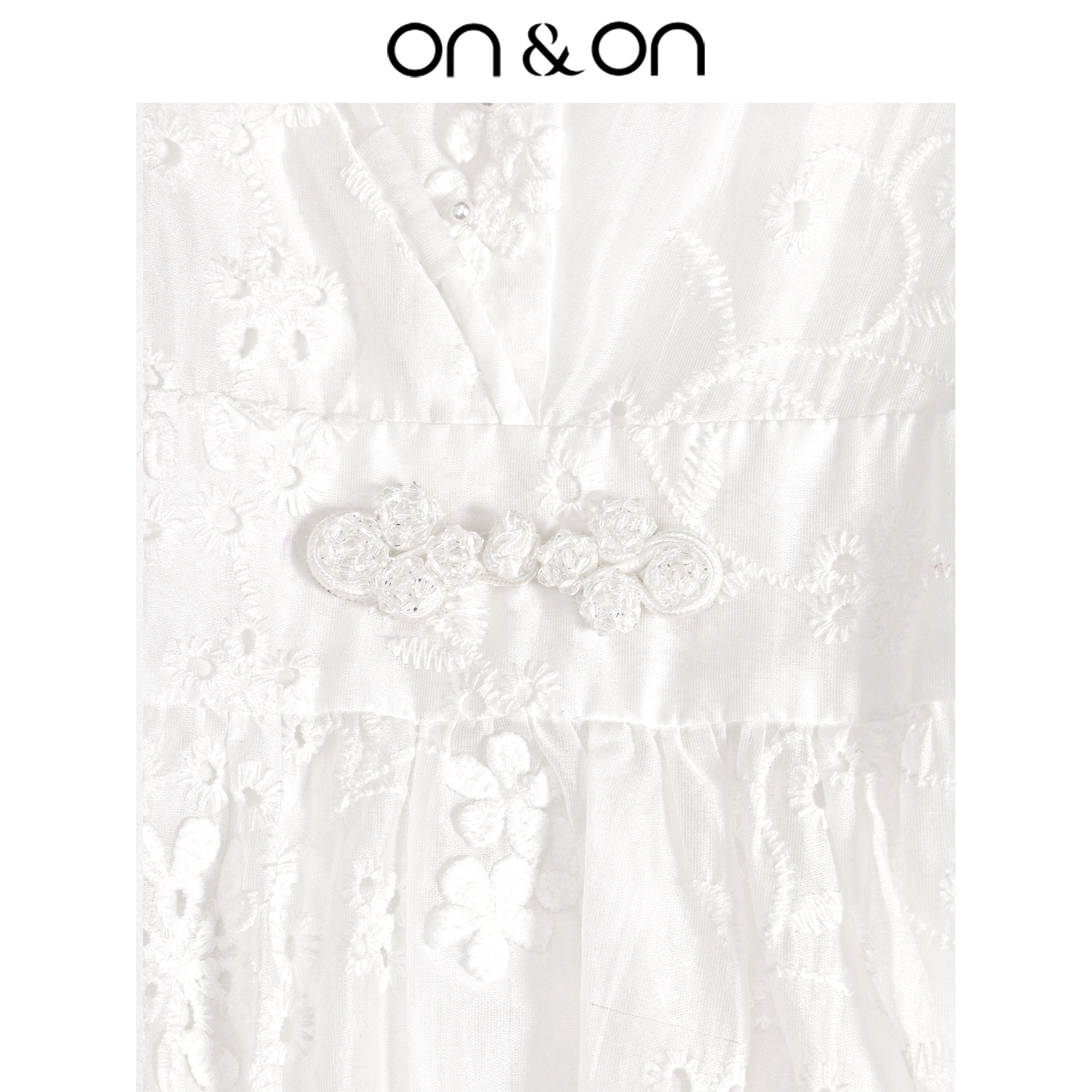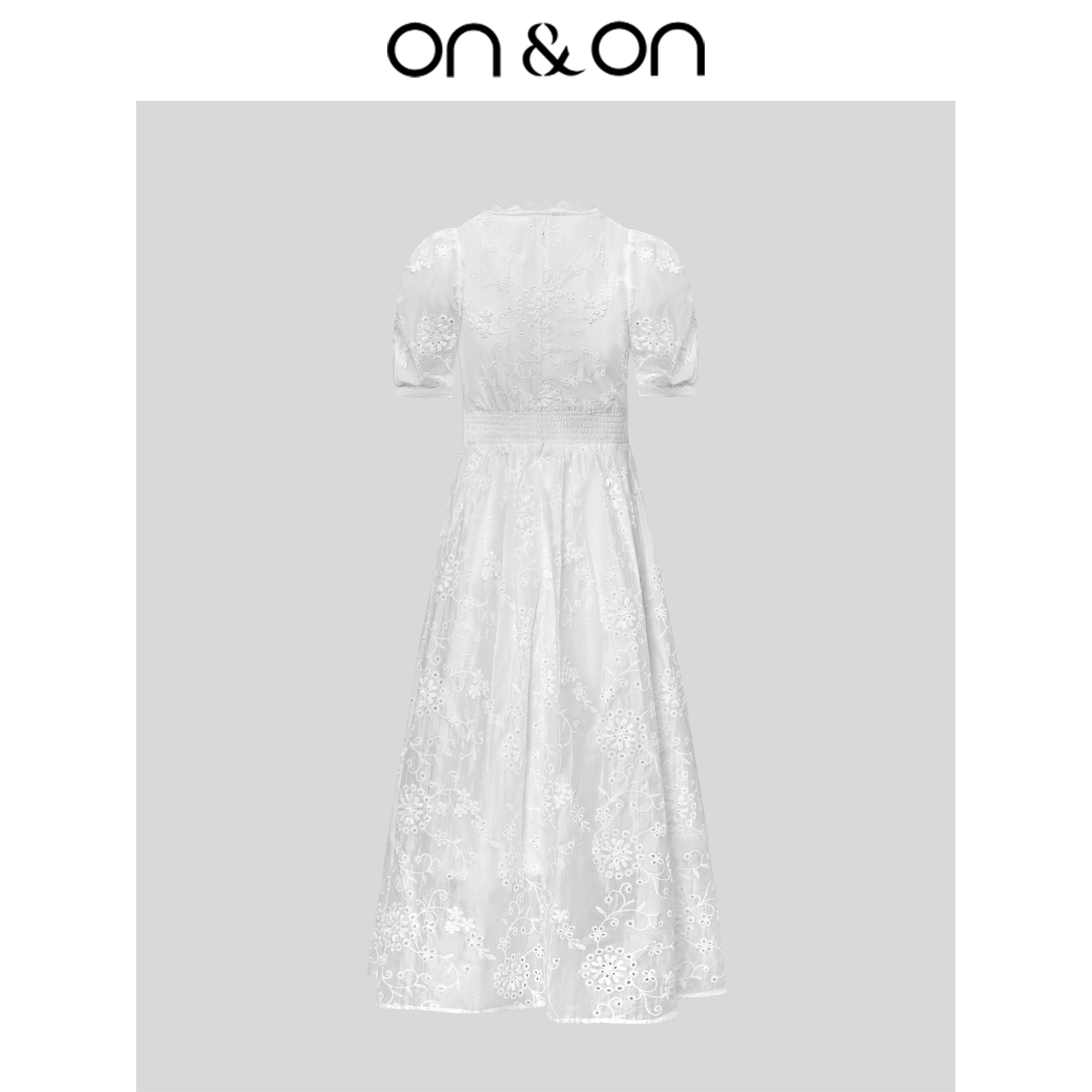 ON&ON/安乃安2025夏季新款韩系V领重工镂空刺绣甜美白色连衣裙女