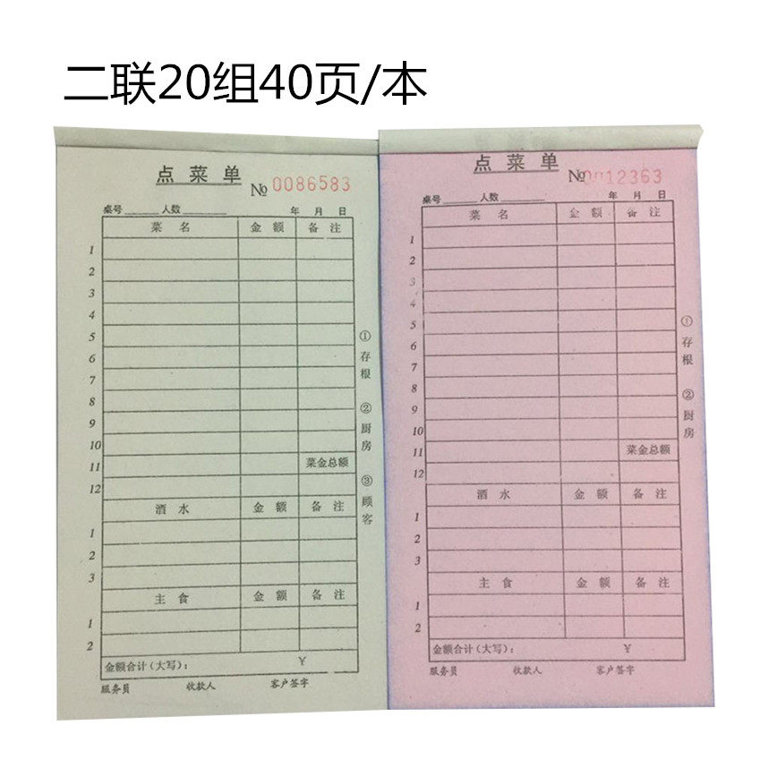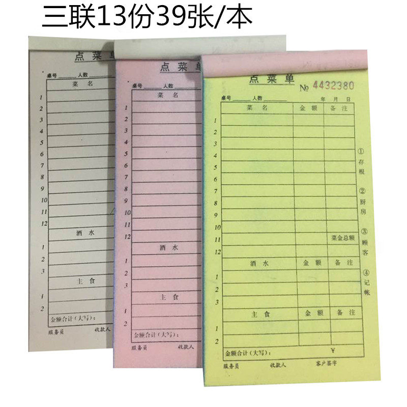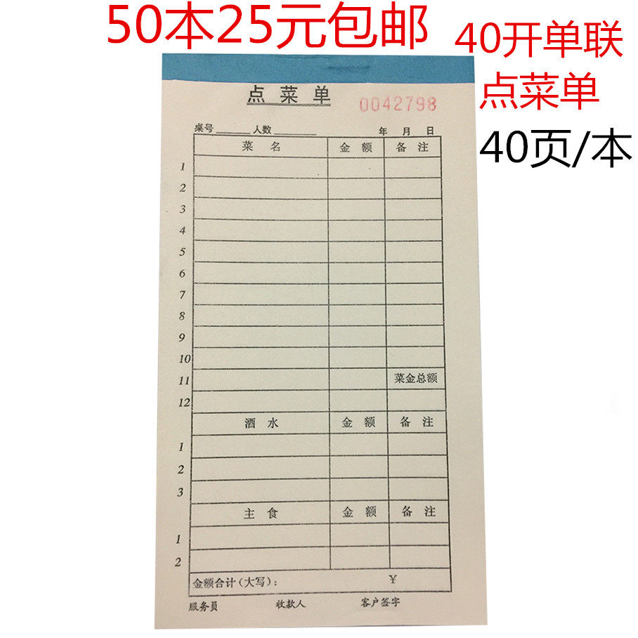 包邮50本装单联一联二联三联四联无碳复写点菜单餐厅饭店用餐饮单