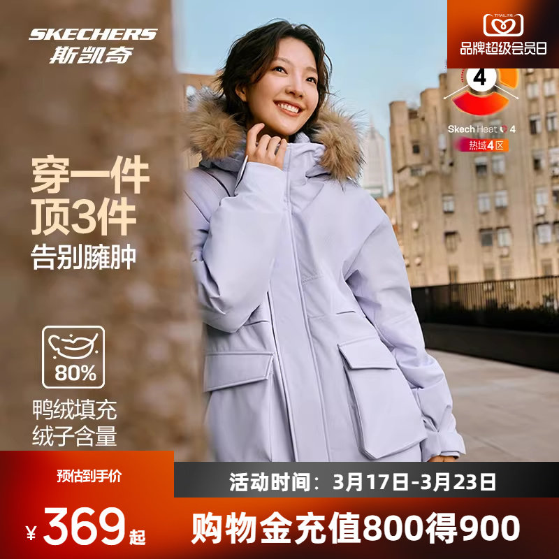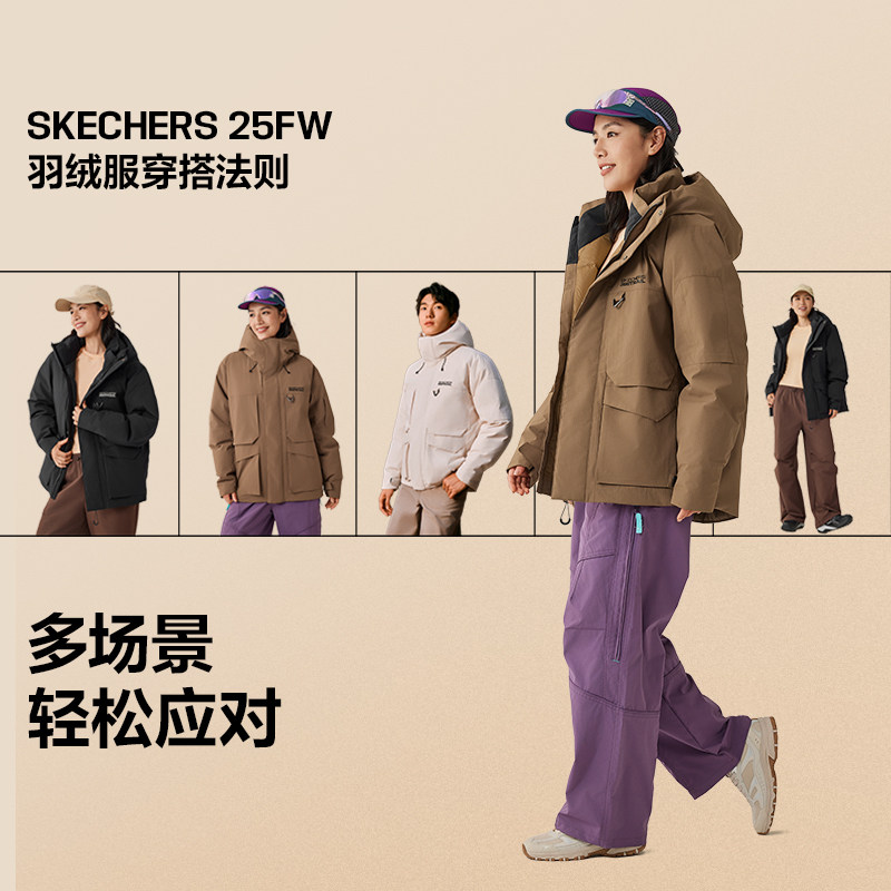 斯凯奇派克羽绒服男女同款梭织中短款宽松立领连帽羽绒服防泼水