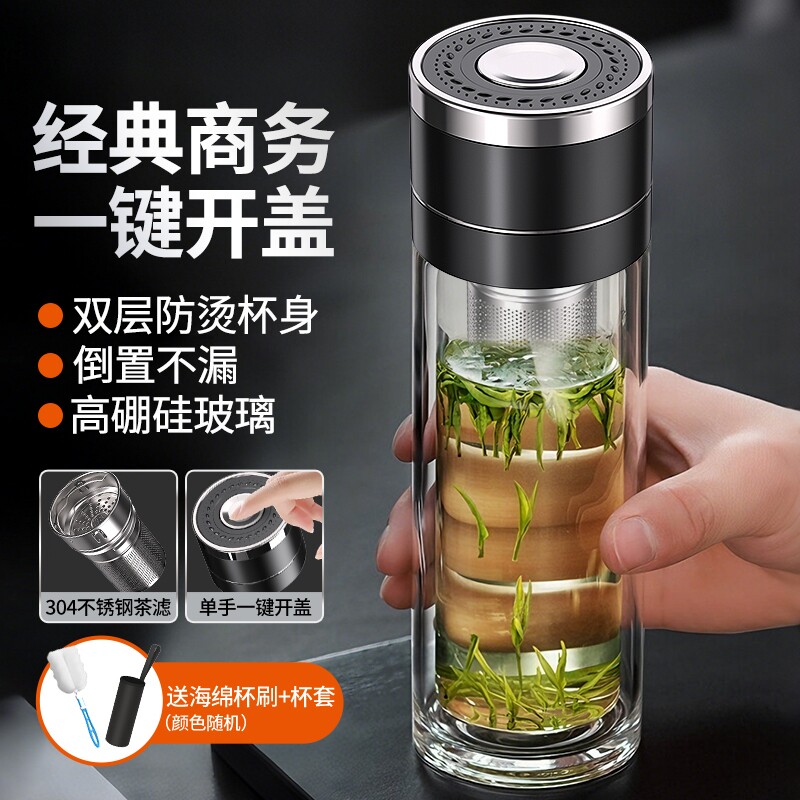 宝选一键开盖水杯车载双层玻璃杯男士泡茶保温速开茶水分离杯茶杯