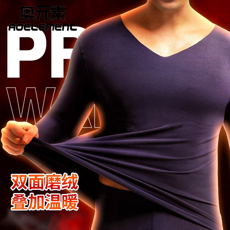 男士保暖内衣无痕单件加绒加厚秋衣秋冬季内穿基础打底防寒棉毛衫