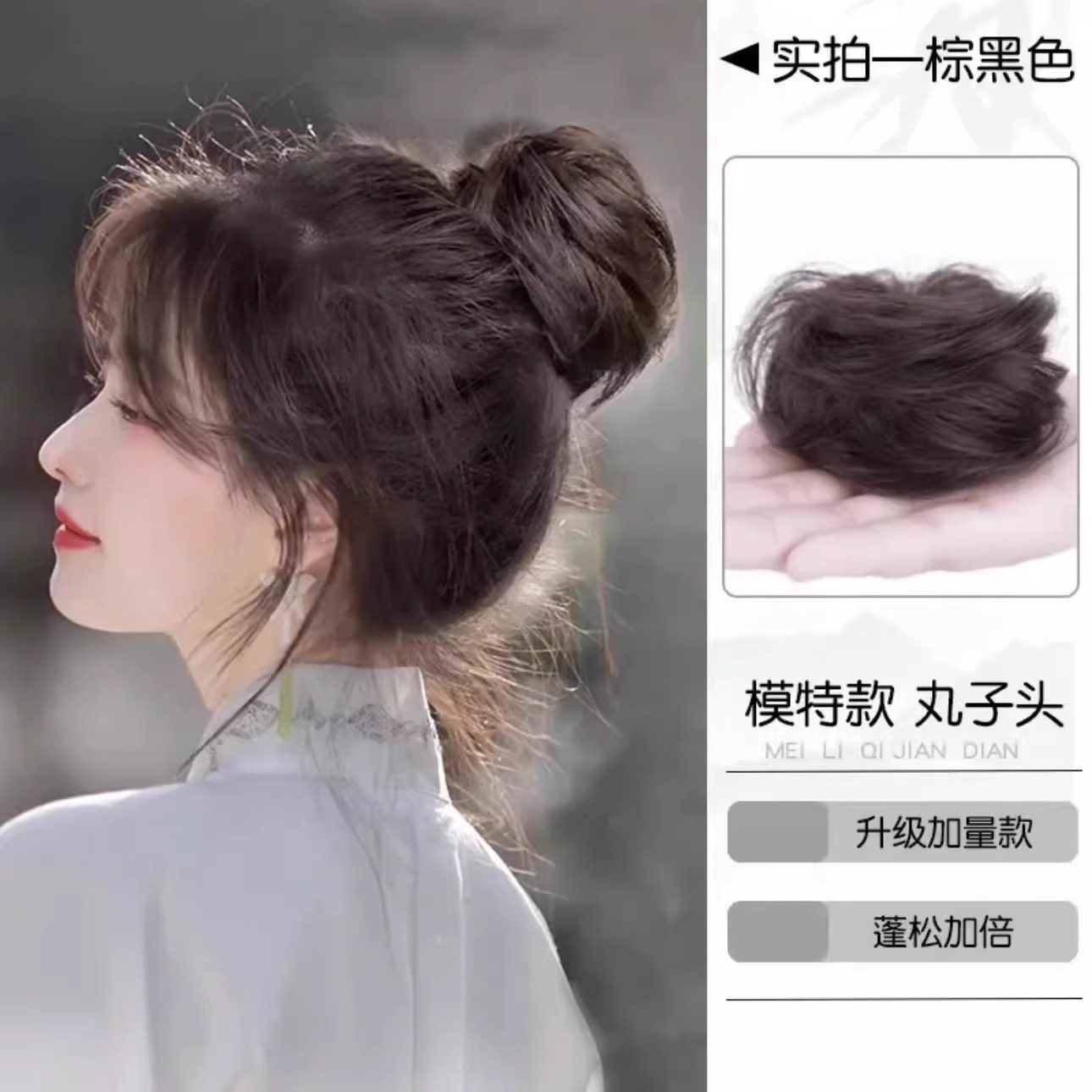 低丸子头发圈假发包女仿真发盘发发饰自然蓬松花苞头发髻卷发头型