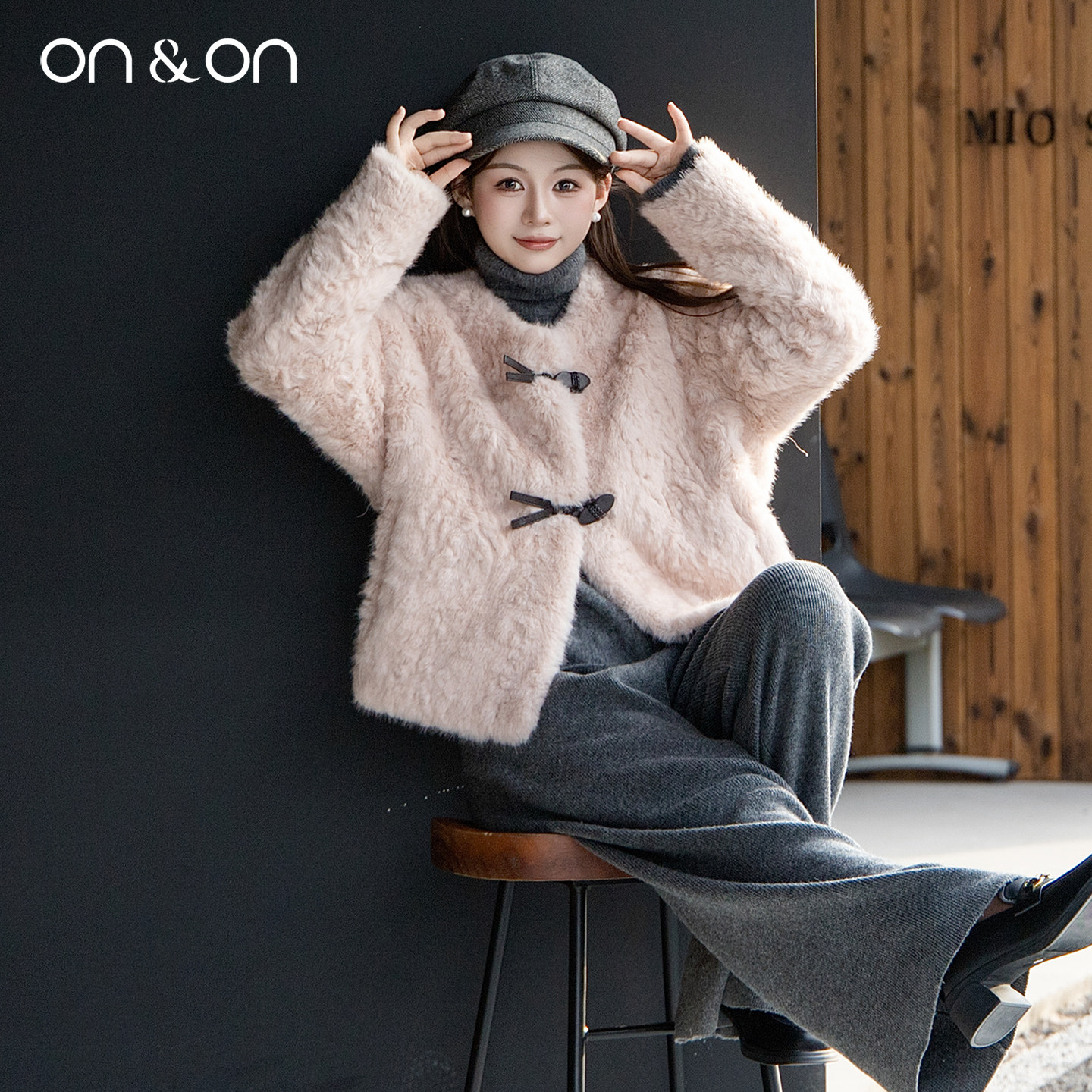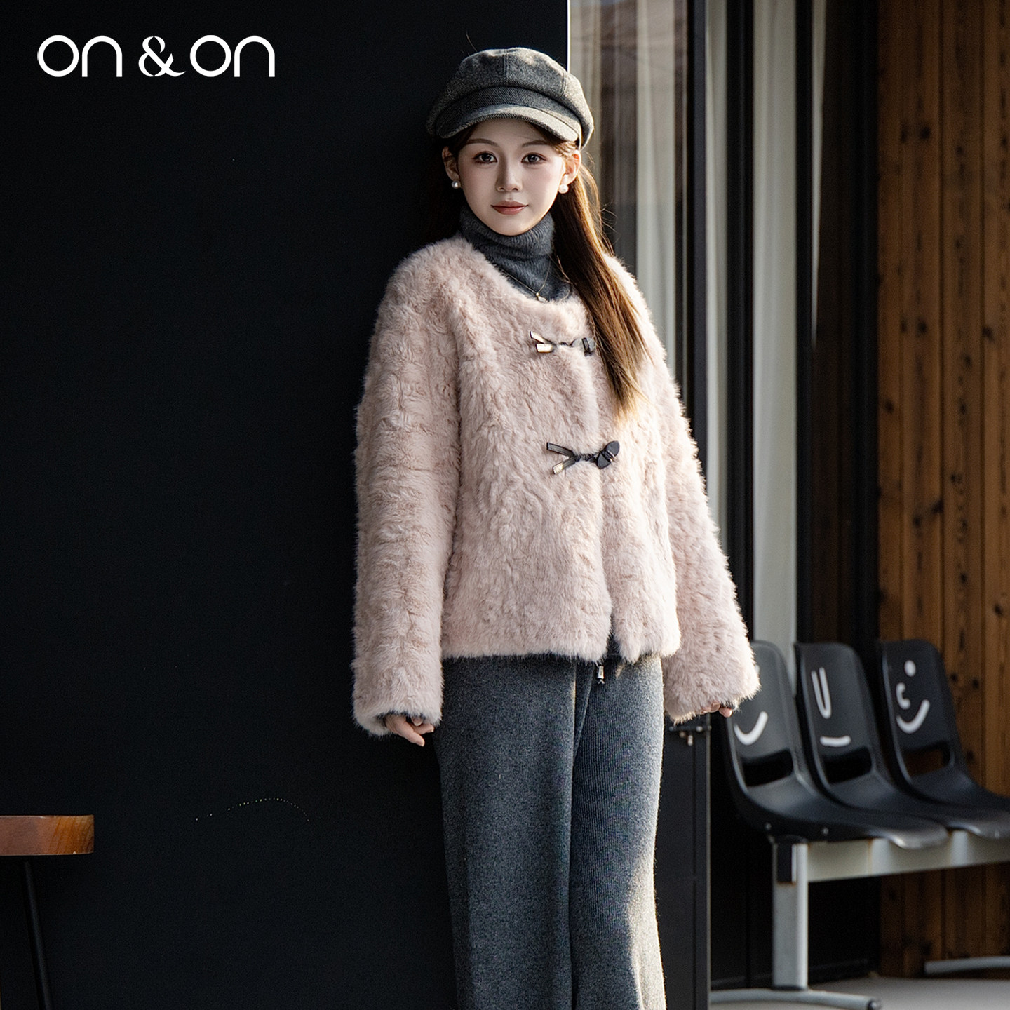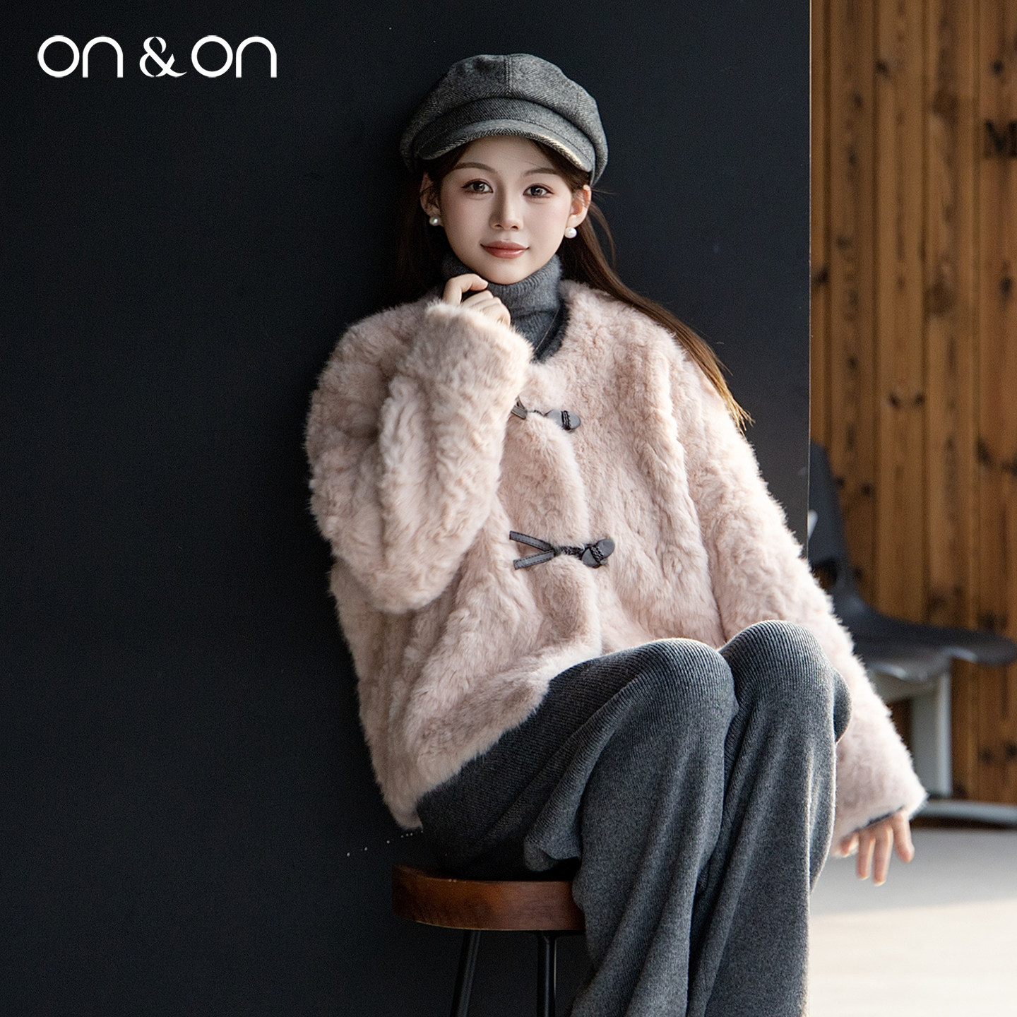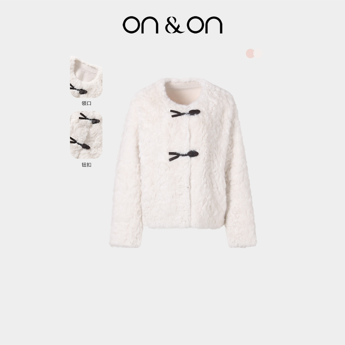 ON&ON/安乃安2025冬季新款韩系圆领气质皮毛一体软糯皮草绒外套