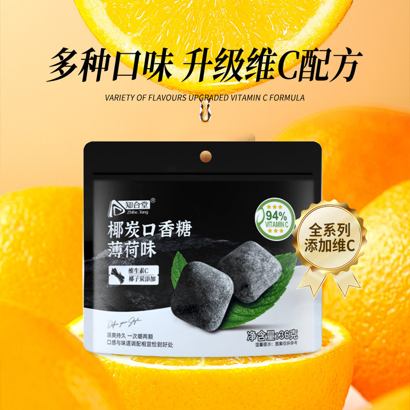 椰炭口香糖清新口气薄荷糖随身开车糖果零食嘴巴香香蓝莓维生素C