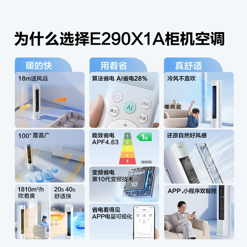 国补8折海信大3匹省电E290立式空调 X1A一级变频家用客厅柜机泰吉