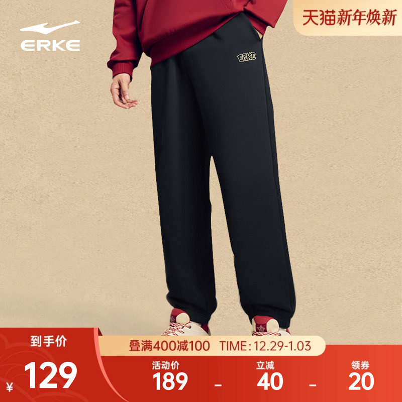 鸿星尔克裤子男款加厚冬装新款男士新年卫裤加绒运动裤本命年男裤