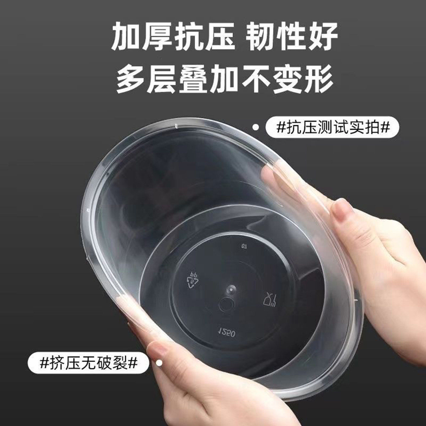 加厚一次性打包盒食品级商用1250/1500圆形带盖透明餐盒外卖饭盒