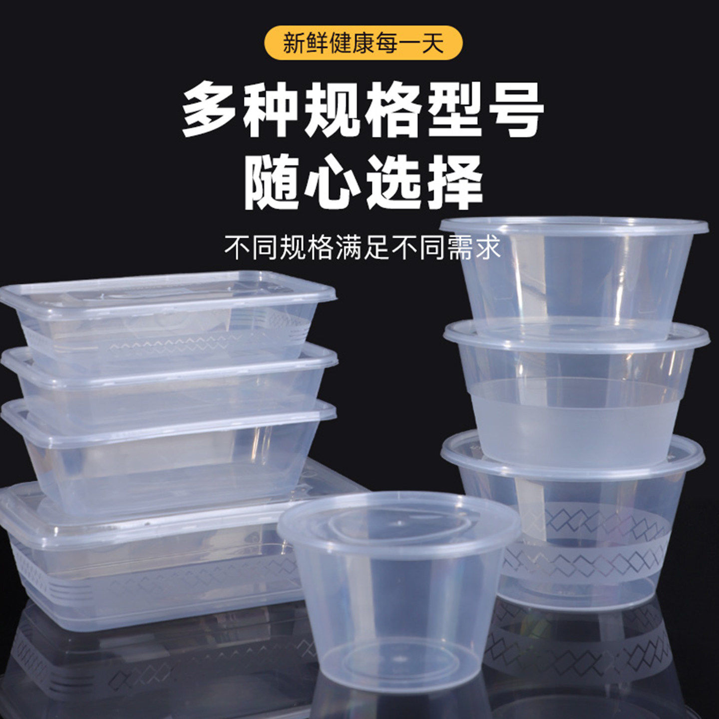 食品级一次性餐盒打包盒长方形外卖快餐水果圆形塑料碗带盖子饭盒