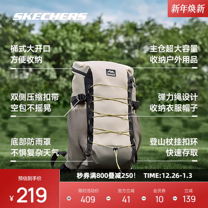 斯凯奇户外包男女款多功能双肩包防雨大容量桶式登山徒步轻便背包