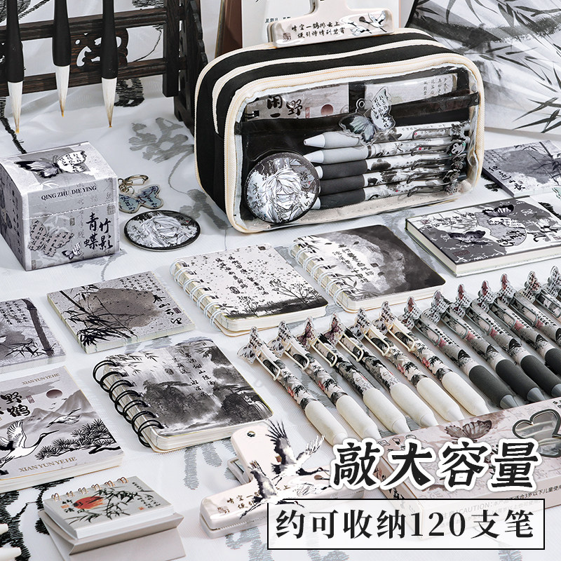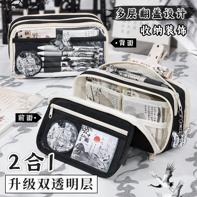 13层水墨国风!超大容量笔袋男生2025新款超火高颜值ins男孩款文具盒小学生铅笔盒透明初高中女生文具袋痛包
