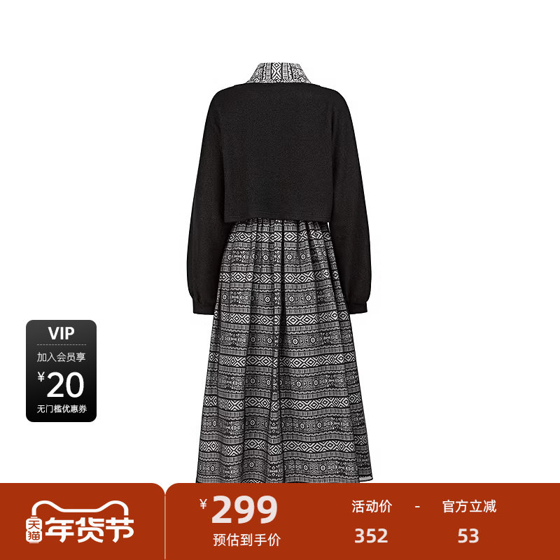 sdeer圣迪奥女装印花收腰网纱针织衫连衣裙套装S244Z1417
