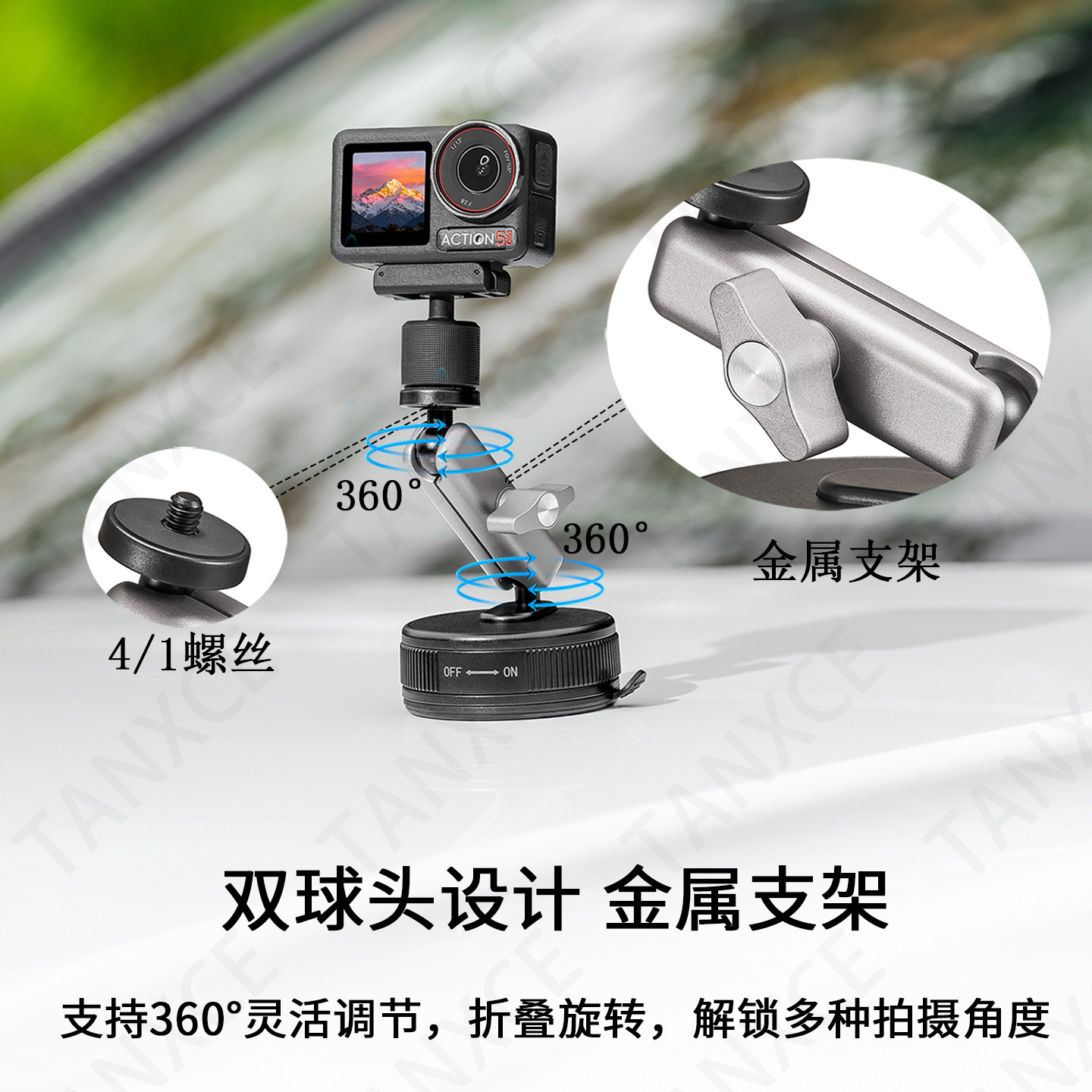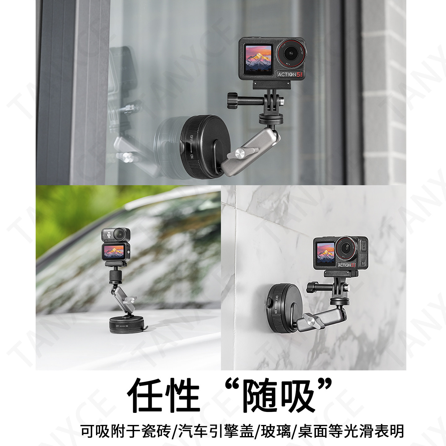 TANXCE适用大疆Action6/5Pro/4/3运动相机车载吸盘支架Osmo 360/Nano汽车真空吸盘支架户外拍摄运动相机配件
