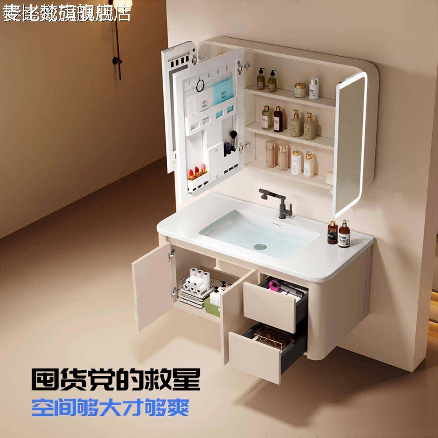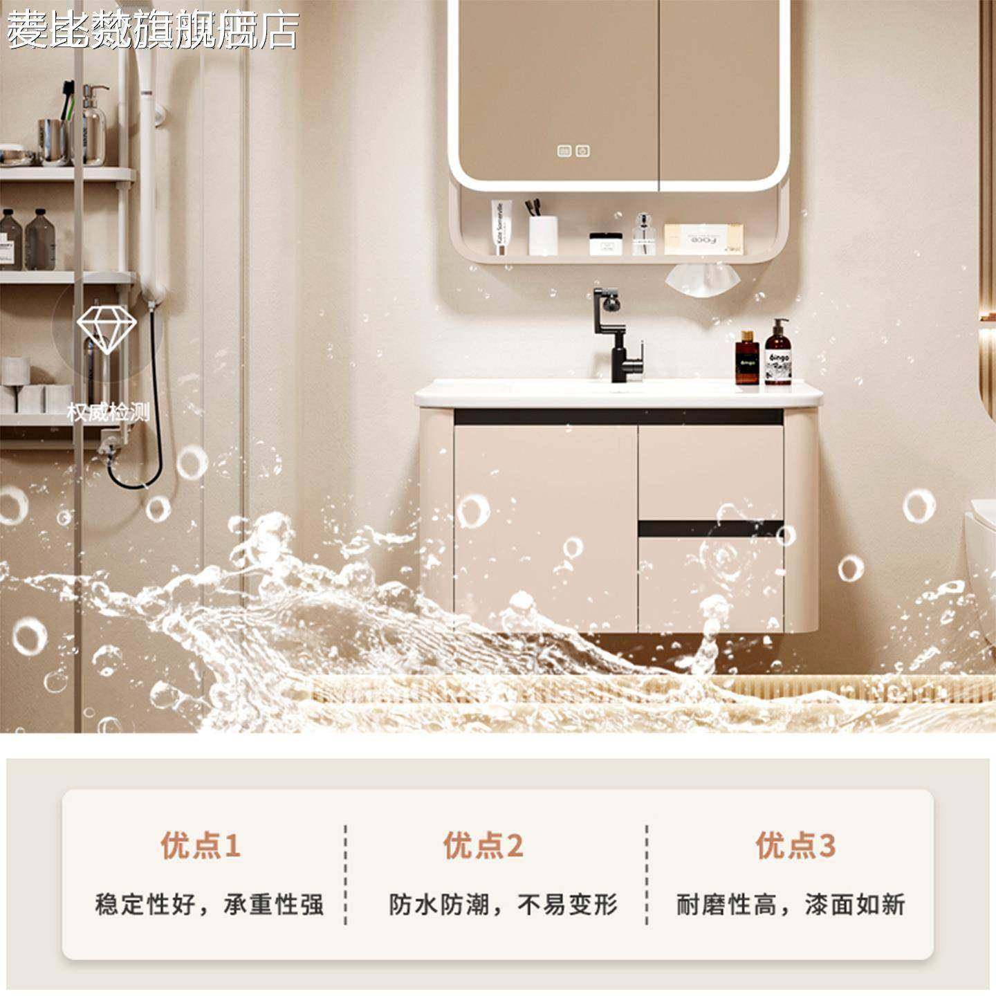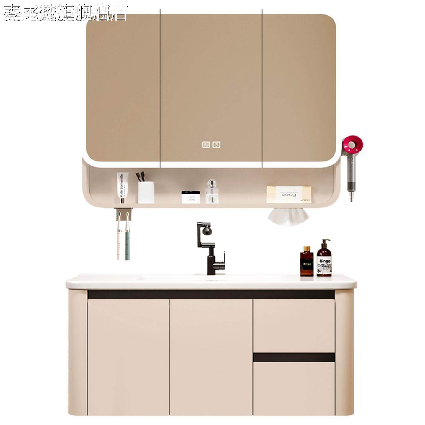 麦比梵奶油风蜂窝铝浴室柜组合化妆室一体陶瓷洗手池洗脸盆洗漱台美妆镜摆件饰品垫垫床笠拉车