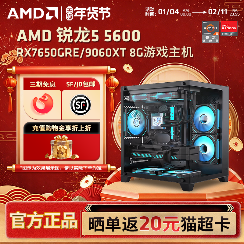 【12期免息+国补】AMD锐龙R5 5600/5500/6500XT/RTX5060/7650GRE/9600XT电竞游戏主机永劫台式DIY组装机电脑