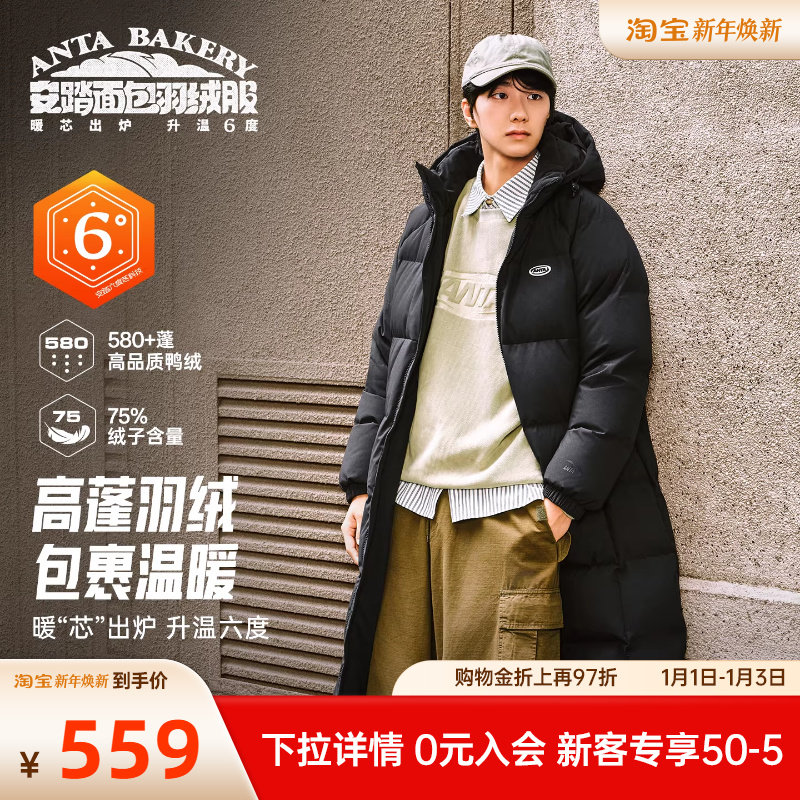 安踏火山岩长款羽绒服男2025冬季新款防泼水保暖极寒棉服外套上衣
